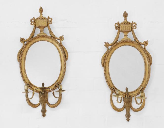 A George III-style giltwood and gesso oval mirror, second half of the 19th century, with scrolling foliage to the crest and terminal, 63cm wide 158cm high £600 - 800