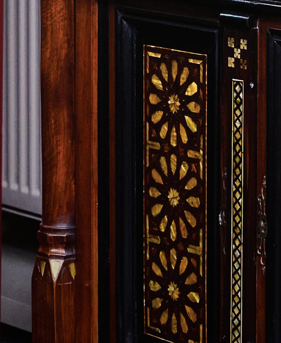 These designs were not literal reproductions but informed reinterpretations, integrated into cabinets, seating and interior ensembles, intended for cosmopolitan bourgeois and exhibition settings. Shown at international expositions, Parvis’s North African-inspired furniture reflected contemporary fascination with ‘the Orient’, while demonstrating Italy’s role as a cultural intermediary between Europe and the Mediterranean world.