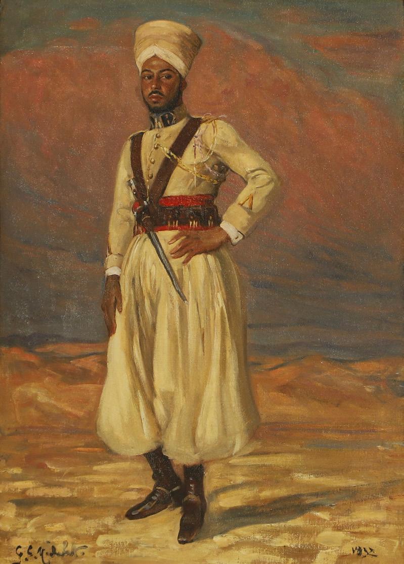Georges Claude Michelet (French, 1873-1946), Portrait of a Spahi signed ‘G. C. Michelet’ l.l. and dated ‘1932’ l.r., oil on canvas 76 x 55cm; framed 90 x 68cm