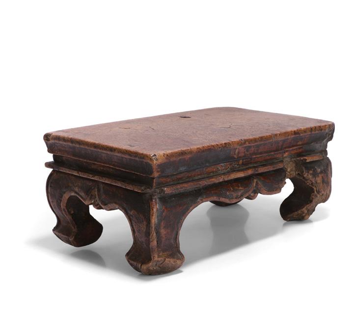 An elm altar table, Qing dynasty (1644-1911), Chinese, of typical form, with a shaped apron, over square supports