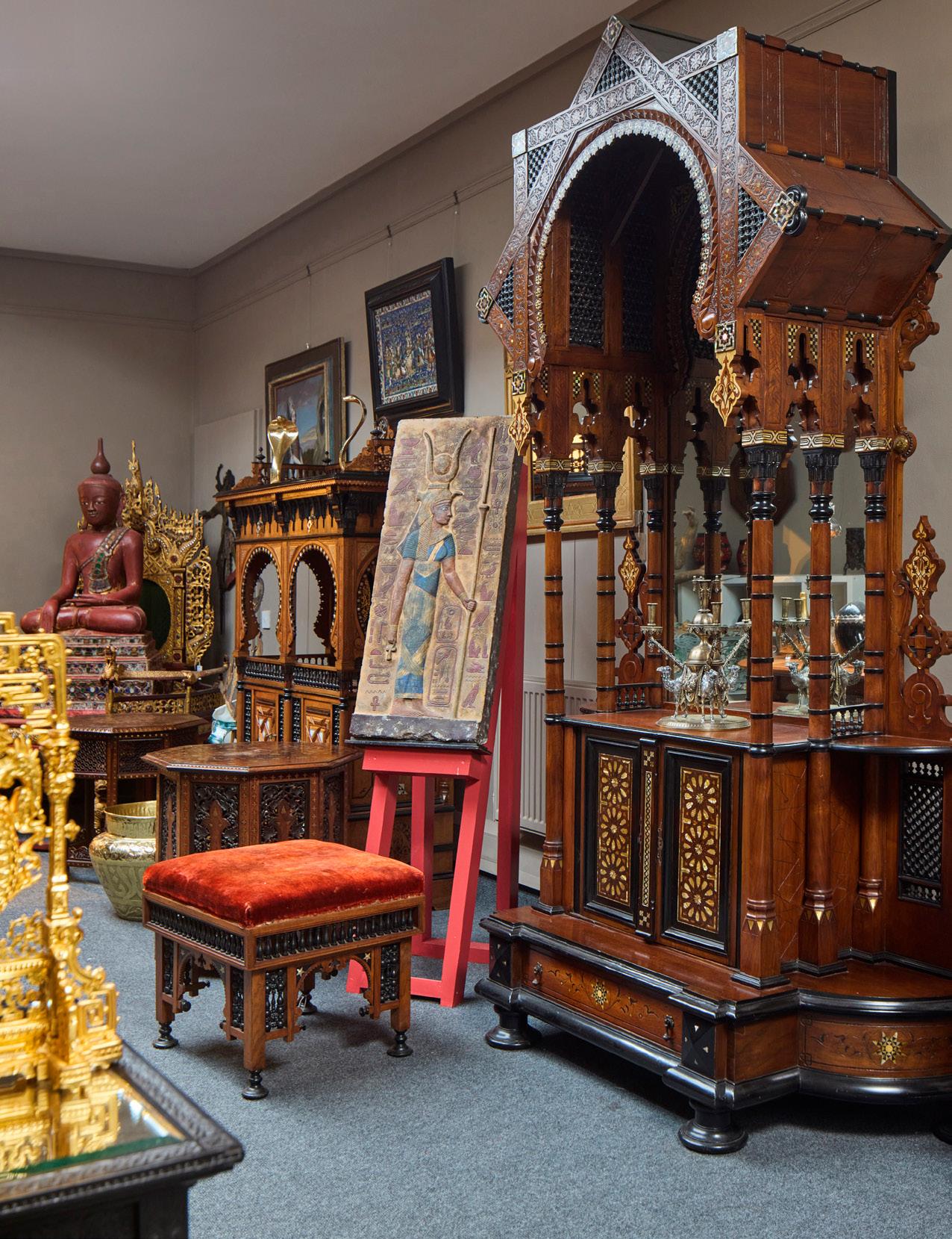 That generosity of instinct was always shared. I first understood it fully over a cup of tea in Peter’s densely packed Westbourne Grove shop. A lady, browsing, accidentally knocked into a deeply carved Anglo-Indian jardinière, piled high with ostrich eggs. One toppled and smashed on the floor. There was a gasp. The lady apologised repeatedly. Peter calmly reassured her. When the apologies continued, Peter suddenly stood up, picked up another ostrich egg, and hurled it theatrically behind him. It exploded spectacularly.
