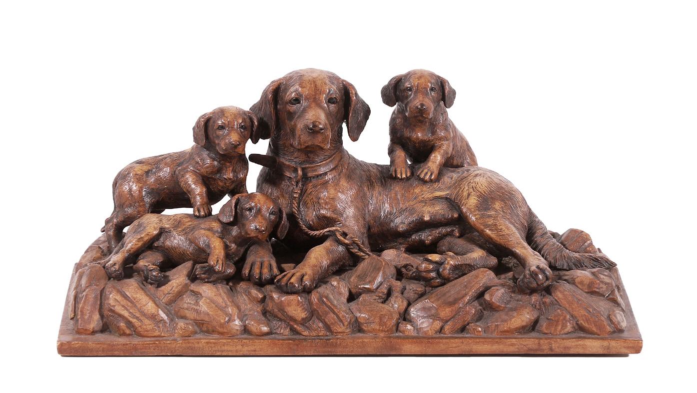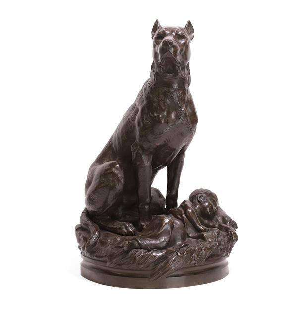 Hippolyte Peyrol (French, 1856-1929), ‘Protection’, circa 1890, bronze group of a seated Great Dane, stood over a sleeping child, signed to the base ‘H. Peyrol’ 34cm diameter, 55cm high