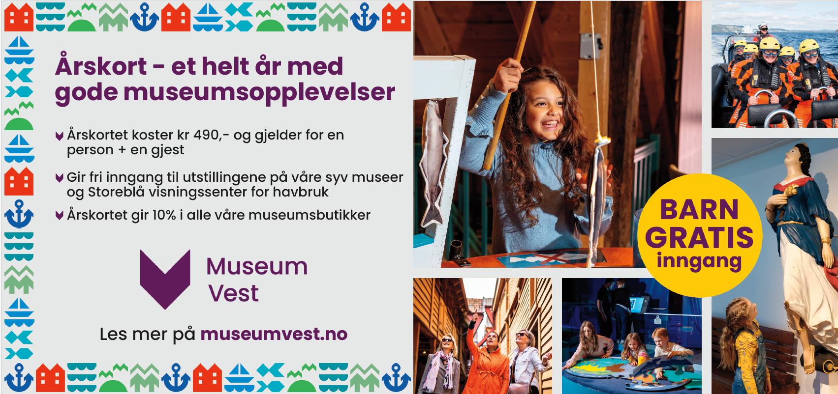 - Barn inntil 18 år kommer gratis inn! En voksen koster 150 kroner Da kan dere boltre dere i tre etasjer og Storeblå visningssenter for havbruk i 48 timer. Eller du kan kjøpe et årskort for 490 kroner (som inkluderer å ta med en venn), og som gjelder for alle 7 museene til Museum Vest. Det mener jeg er tidenes gavepakke!