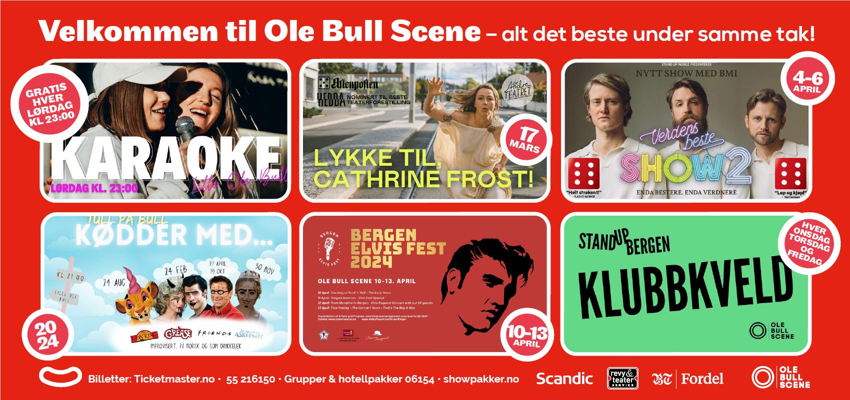 Så hva er Ole Bull-huset? Kanskje litt mer enn du tror. Et kulturhus, selvsagt. Alt fra de største artistene til de små. Eventer, stand up, konserter, podcaster Noen er egne produksjoner, på andre er de utleier Visste du at du kan leie en scene og to her? Ole Bull arrangerer faktisk det meste fra A til Å Du som privatperson kan ha alt fra eventer og konfirmasjon til bryllup og bisettelser.
