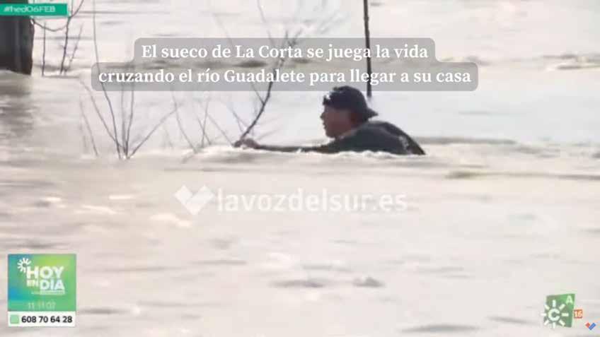 El empresario sueco Lars Walkler, grabado en el río Guadalete desbordado, niega haber puesto vidas en peligro o haber sido detenido por la policía. Págs. 51-52