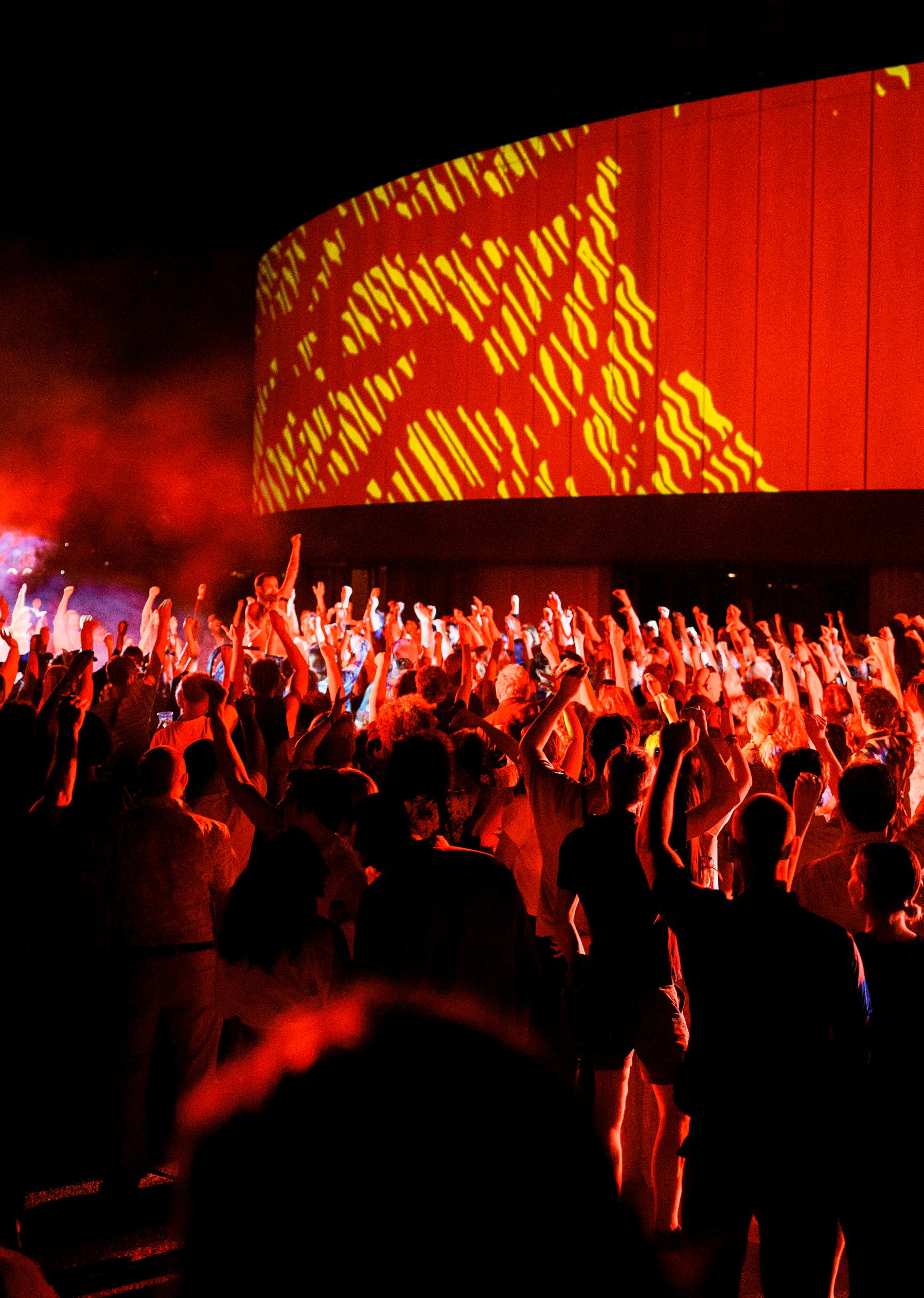 Blak Out opened with Held (Lucy Simpson, Nardi Simpson and Uncle Matthew Doyle) and featured a series of intergenerational works including Garabari (Joel Bray), Garrigarang Badu (Peta Strachan and Jannawi Dance Clan), Redfern Renaissance, Dear Son, Kankawa Nagarra, and INKABEE, among others. The program also featured the theme of Blak Joy, celebrating connection, creativity, and cultural vitality, and was highlighted by Vigil: Belong, which brought together more than 300 community choir members in a moving act of collective song.