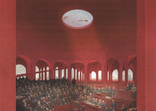 Banquet re-imagines the Tin Sheds Gallery as an interactive banquet hall. Referencing Roman Emperor Nero Germanicus’ Golden Banquet Room - the gallery is transformed into a spatial laboratory exploring food processes and the human condition. Fictional moments in film and literature are re-animated through seven handcrafted analogue ‘food machines’, accompanied by architectural drawings.