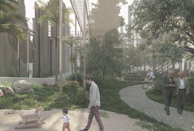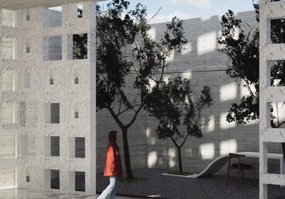 existing circumstances that included: unexpected details of public seating and casual meeting spaces in and outside buildings; informal gardening projects between buildings; the life of birds and small animals associated with inhabited mature trees on the site; external private spaces like balconies and their multiple uses; occupancy patterns for on-site car parking as well as open spaces such as lawns; and so forth. Awareness of these conditions offered tools for more precise diagnosis and understanding future potentials, given commercial pressures and current density expectations for the inner-city location. Such collective research supported design tactics and proposals which looked to a combined urban and architectural strategy, an ‘anti-masterplan’ that considered small details and specific lives at the same time as the future city. The workshop posed a deliberate resistance to casual demolition and ‘tabula rasa’ as an architectural position: participants framed a commitment to seeing ‘the new’ as a careful, attentive transformation of what already exists.