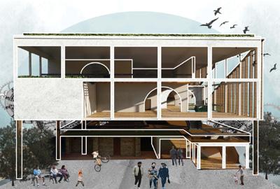 ‘Section, transformation of walk-up apartments, Waterloo’ Matthew Asimakis, Liat Busqila, Caitlin Roseby (M Arch graduates)