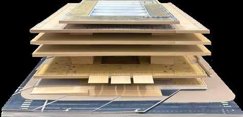 TYPE: DOUBLE- LOADED CORRIDOR 31% OPEN SPACE With this hexagonal design, this iteration aims to maximize space use within the site as well as interconnect the buildings and corridors like they are a bee hive with honey. Passageways are placed near the included communal spaces. HIVE