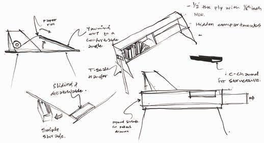 It can be exhausting using a basic drafting table. It has no major compartments, or efficient ways to optimize time. This table allows a designer to skip making some basic decisions like like “where do keep my pencil?” The table says look at my bottom left corner or the right bottom corner.