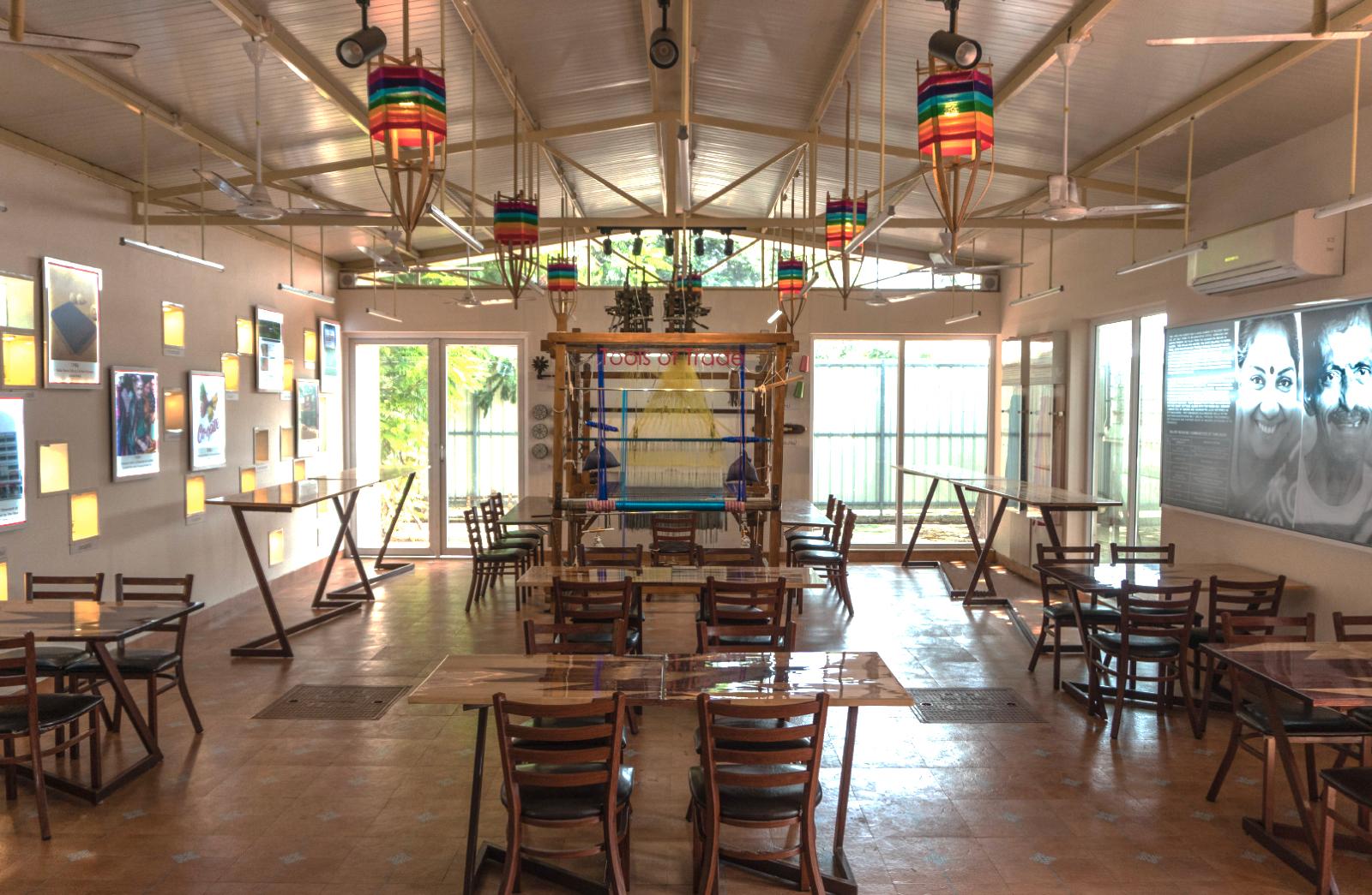 fabrication of furniture pieces for a handloom themed cafe in Chennai, India.