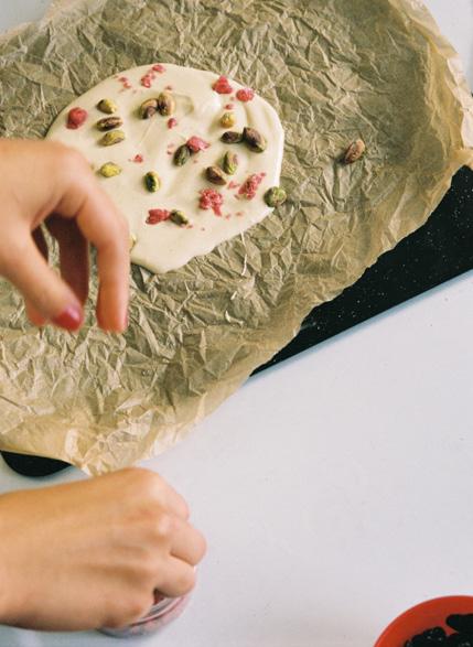 1Make a dark chocolate ganache: melt the chocolate in a double boiler (page 276). Meanwhile, put the cream, glucose, invert sugar/honey and butter in a saucepan and bring to the boil.