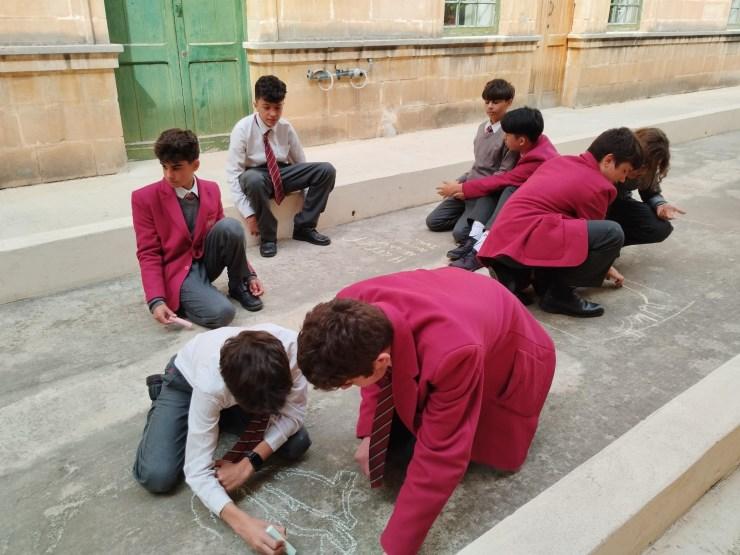 Meanwhile, the art sessionoffered a creativeoutlet for students toexpress their reflections onMalta's wartime history. Against the backdrop of Valletta's skyline and the Churchof St Publius in Floriana—bothsignificant sites heavily affected by bombardment during the war students were tasked withcapturing the atmosphere of the era. Armed withchalk, they meticulously recreated scenes of destructionand resilience, evoking the sights and sounds of World War II. The exercise not only honed their artistic skills but alsofostered empathy and understanding for the hardships endured by Maltese citizens during those