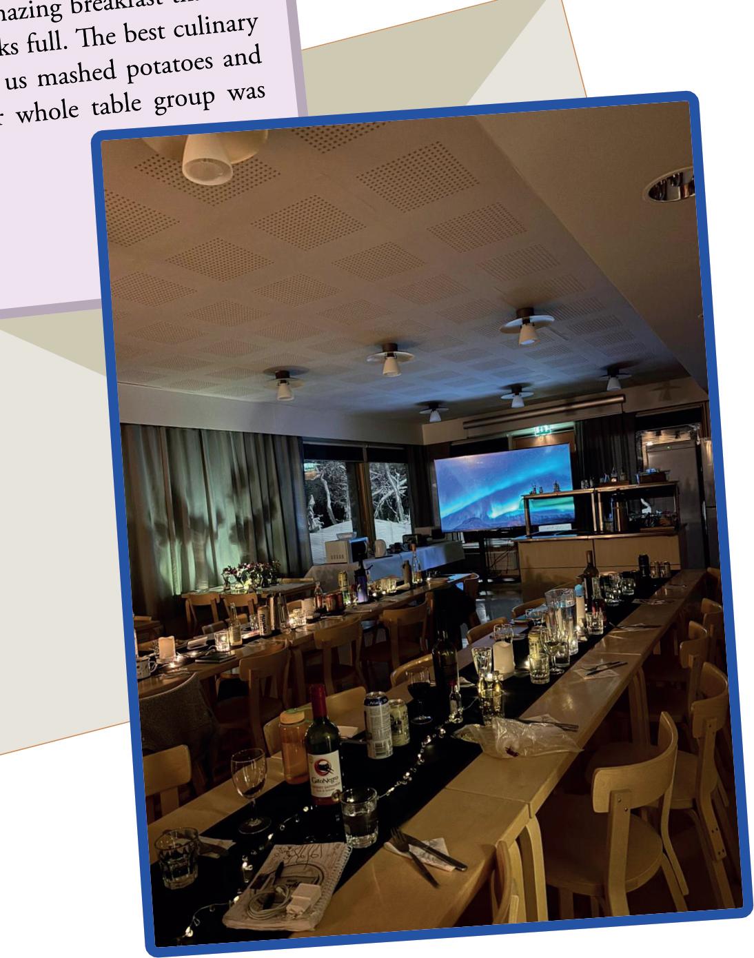The amenities at the Kilpisjärvi station were phenomenal!! Huge shoutout to the kitchen staff and special thanks to Pirjo. Our days couldn’t have started better than with the amazing breakfast that left usreadytoseizethedayandourenergytanksfull.Thebestculinary experience was definitely when they served us mashed potatoes and oven-baked fish or vegan soy patties. Our whole table group was moaningbecausethefoodwassogood!!