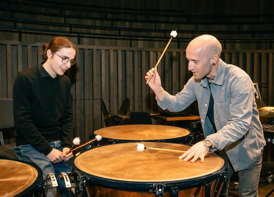 gespeeld, en sinds vorig jaar maak ik ook deel uit van SOV Young. Slagwerk is echt mijn passie. Daarom volg ik sinds dit jaar ook les aan de kunsthumaniora van het Lemmensinstituut.” Ook Jonathan begon op dezelfde leeftijd, zij het initieel voor een iets andere reden: “Mijn oudere broer had al voor slagwerk gekozen, maar was snel gestopt. Er stond dus thuis een drumstel stof te vergaren, en om mijn ouders niet te veel op kosten te jagen koos ik hetzelfde. (lacht)” Rond zijn zestiende wist Jonathan dat hij van zijn hobby zijn beroep wou maken: “Ik speelde op die leeftijd ook heel veel met lokale verenigingen, en er waren een aantal mensen die me vertelden dat ik talent had en conservatorium moest proberen.” Pallieter heeft nu diezelfde leeftijd, en herkent zich in Jonathans verhaal: “Nu ik in Leuven naar school ga, heb ik leeftijdsgenoten waarmee ik over klassieke muziek kan babbelen. Dat werkt heel aanstekelijk