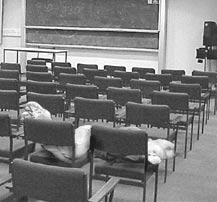 ....menet aamulla väärälle luennolle, mutta et kehtaa lähteä pois kesken kaiken. Sen sijaan esität olevasi äärimmäisen kiinnostunut luennoitavasta aiheesta.