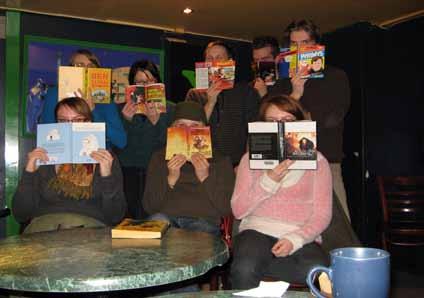 Lukupiiriläisiä Cosmic Comic Caféssa.