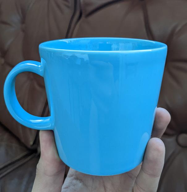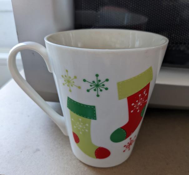 Tämä muki on edellisen, julkeasti rikotun, seuraaja. Edellisellä mukilla oli tunnearvoa, tällä ei ollut, ainakaan alunperin. Siksi se päätyi Synapsin toimistolle. Muki löysi tiensä kerrostalon "saa ottaa" laatikosta tstolle. Hyvin on palvellut monta vuotta, eikä ole edes mennyt rikki tai pahemmin kasvanut hometta. Hinta-laatu suhde ollut siis kohdillaan ja kahvikin maistuu tästä erityisen hyvältä.