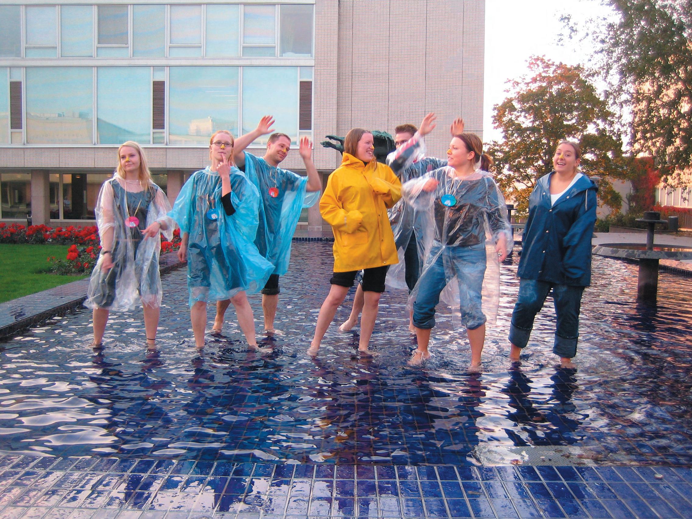 Jaakko paiskoi kylmää vettä armotta pilttien niskaan ja Yliopistonmäen suihkulähteen aaltokone kävi ylikierroksilla. Piltit puhuivat tästä rastista pelonsekaisin tuntein jo aamupäivällä, ja heidän pelkonsa osoittautuivat todeksi. You’ve been baptised!