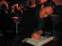 Asiakkaita on reporttereiden lisäksi kolmekymmentä ja keski-ikä on 30 vuoden paikkeilla. Kännisin ihminen oli tuulipukuinen nainen. Suoritimme erittäin analyyttisen psykologisen analyysin, jonka jälkeen olimme yksimielisiä siitä, että kyseessä on eronnut ja säälittävä tapaus. Hänellä on tuulipuvun alla hämmentävä farkkukauluspaita. Mistä muuten vielä löytää farkusta tehtyjä kauluspaitoja? Nainen yrittää puhua kännykkäänsä, mutta humalan aste on jo sitä luokkaa, että puhelin ei kestä otteessa vaan tippuilee lattialle.