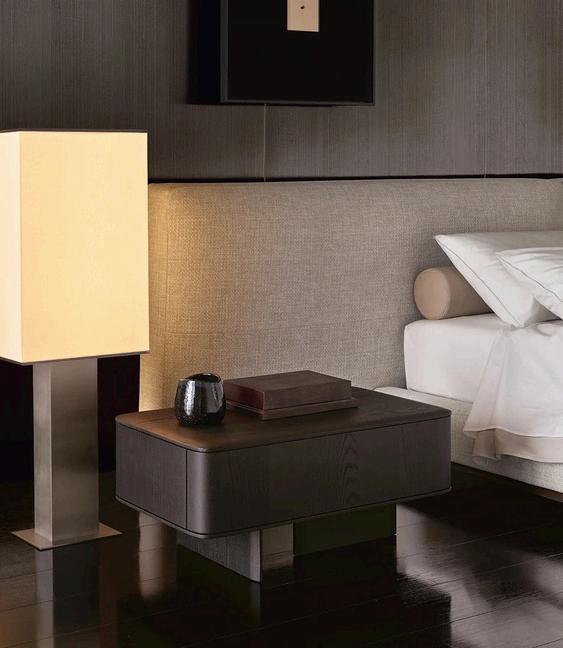 In the Brera collection, elegance is expressed through a horizontal, clean and contemporary style. This is also the case for the bed, with which Jean-Marie Massaud brings the idea of a domestic landscape with a strong architectural undertone to the bedroom. The leather base recalls the couture details of the sofa, as well as the foot and the large headboard.