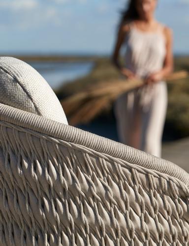 Timeless in style, Kobo chairs and sofas constitute a marvel of technical complexity. Kobo’s secret? A structure made entirely of hand-woven rope around a welded aluminium frame. The curved lines of the armchair and full-length sofa are combined with deep, plush seating for extreme comfort.