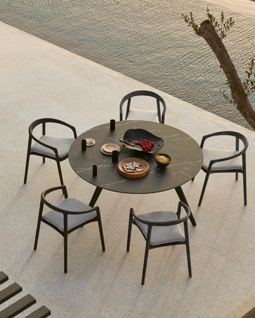 Torsa tables are the epitome of sophistication: slender and light. The sculpted teak base is combined with a tabletop made of teak, marble or monochrome ceramic. A relaxing coffee break, a festive banquet or jolly aperitif: Torsa tables turn any occasion into a moment to remember. Thanks to its understated size, Torsa is apt for small or large spaces and is multi-functional.