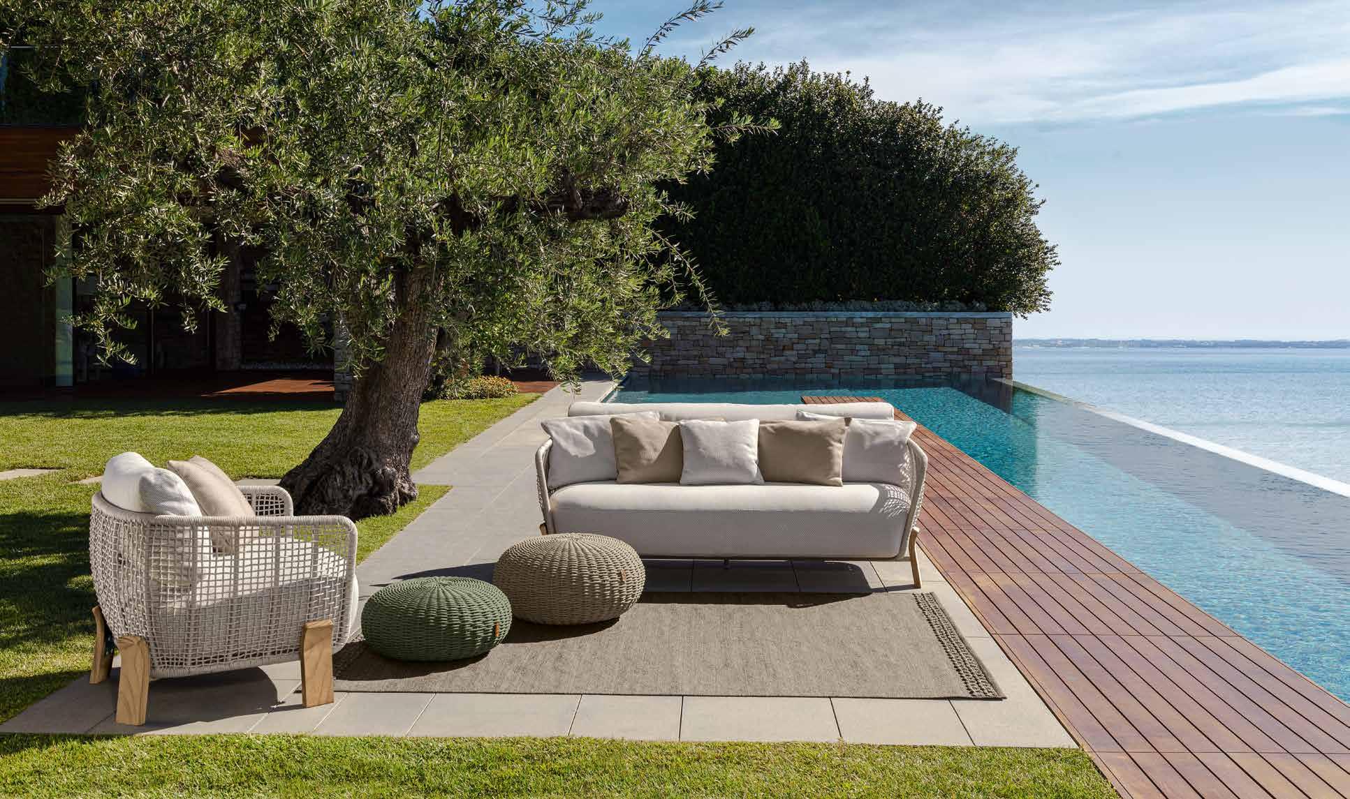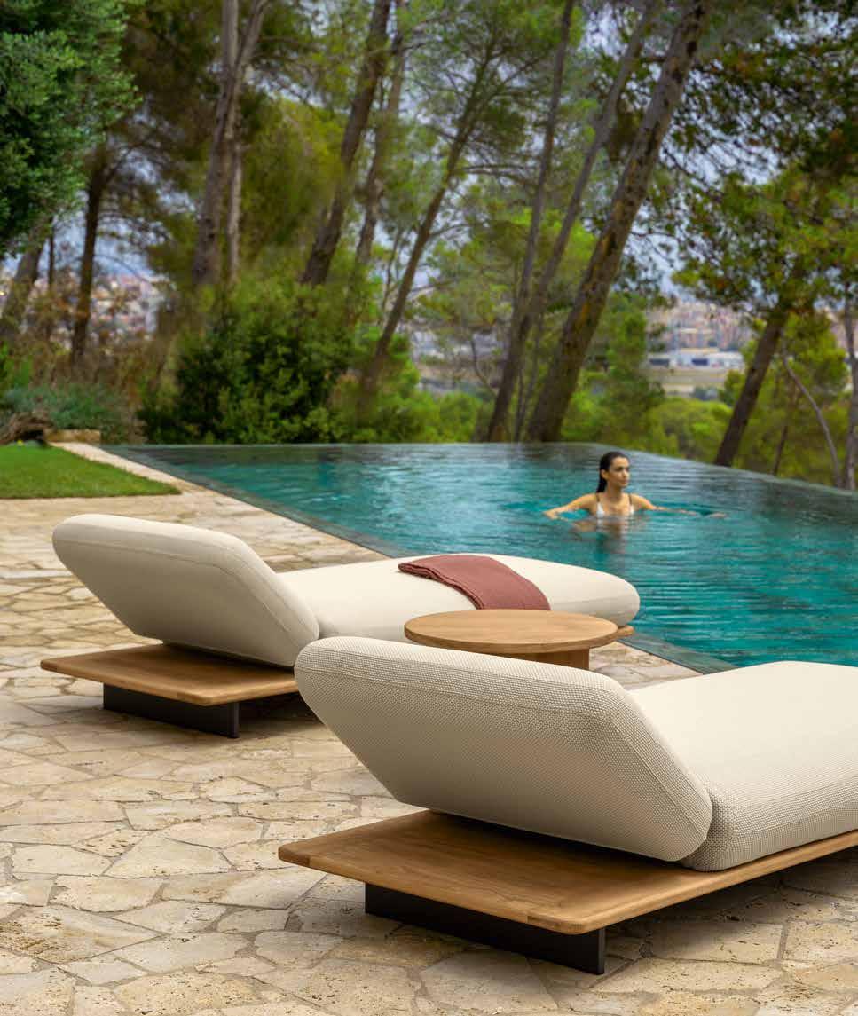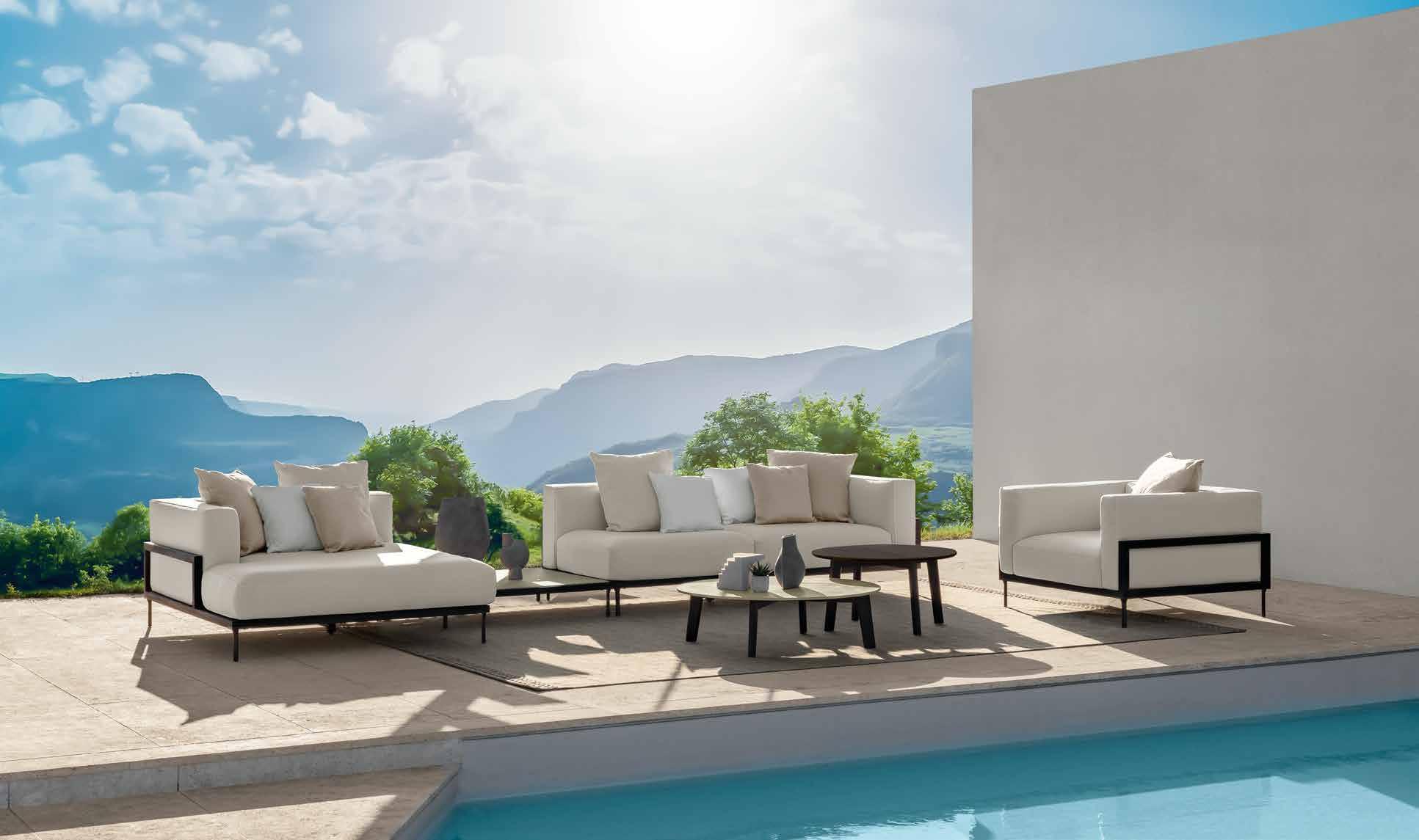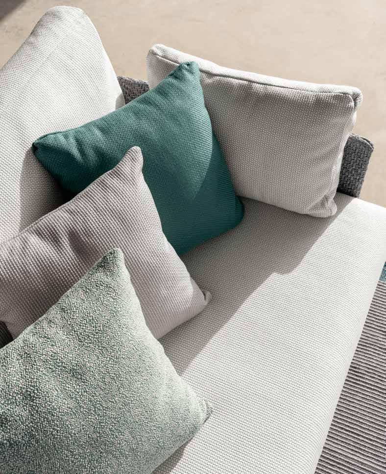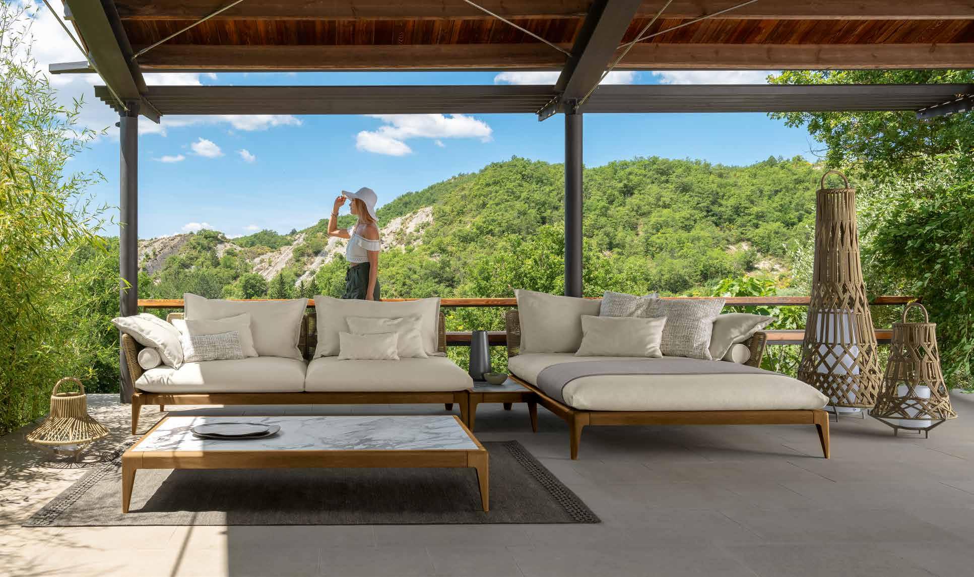 Informal and elegant, contemporary but at the same time tied to tradition. The Allure collection, designed by Christophe Pillet, gets its inspiration by the desire to combine elegance and informality. It is characterized by an unusual modularity that, starting from delicate aluminium feet, develops its shapes through a solid Accoya wood frame. The geometric and linear cushions in different sizes make it possible to create different combinations and scenarios. The result is a collection with a restless soul capable of giving character to mutable outdoor environments.