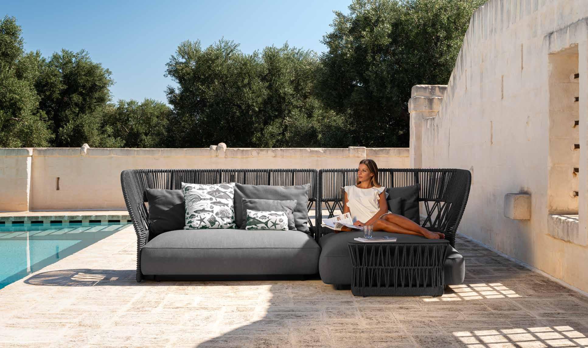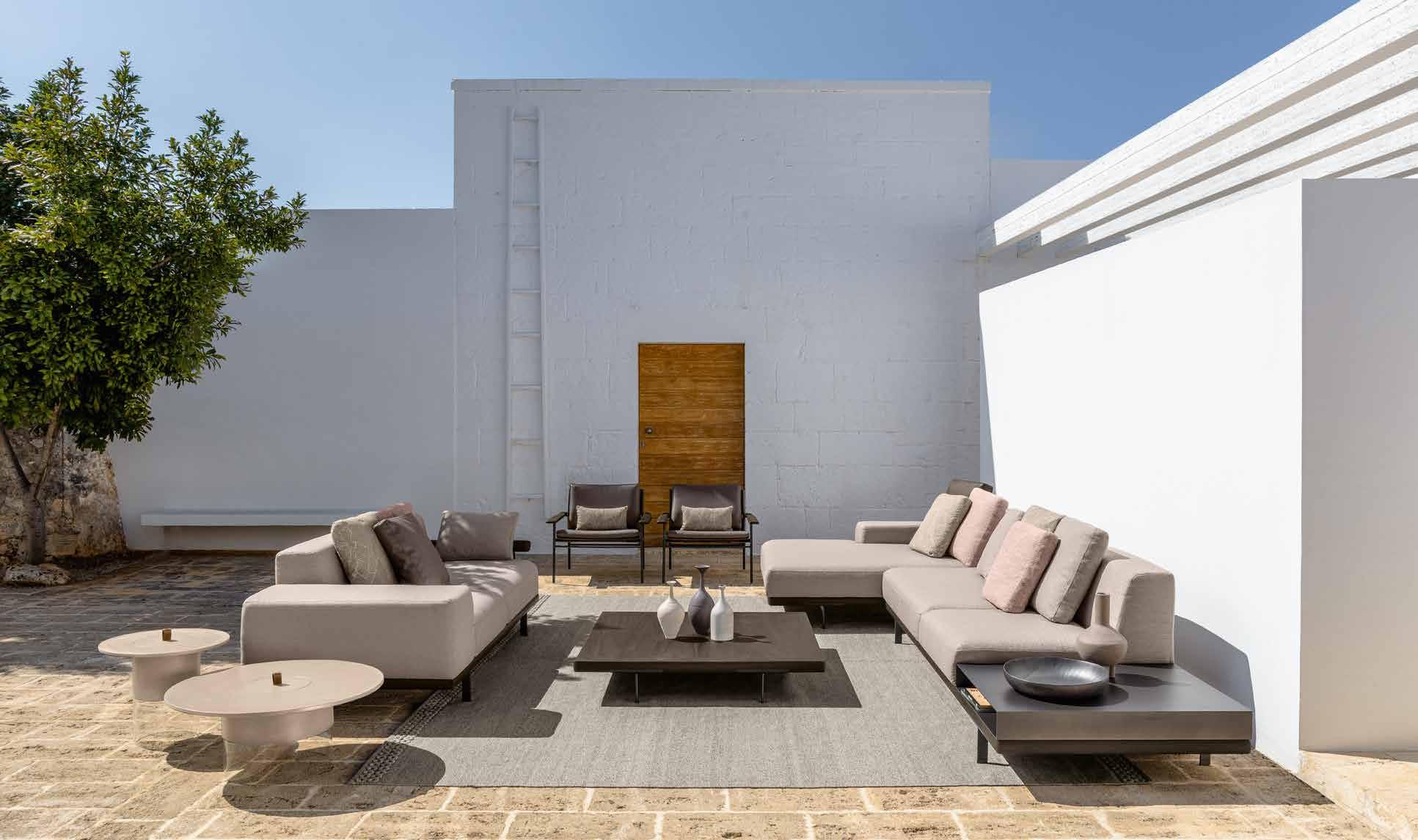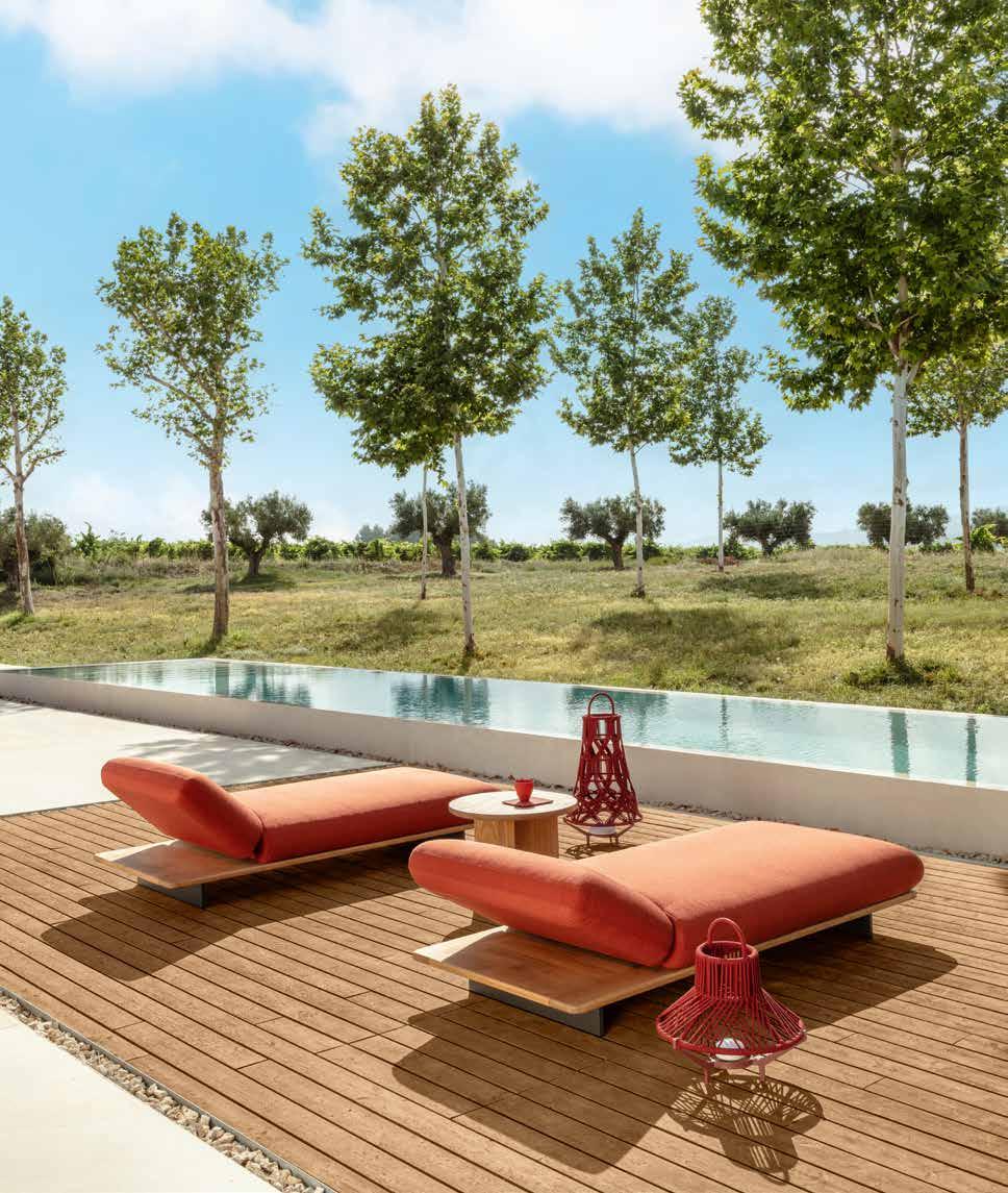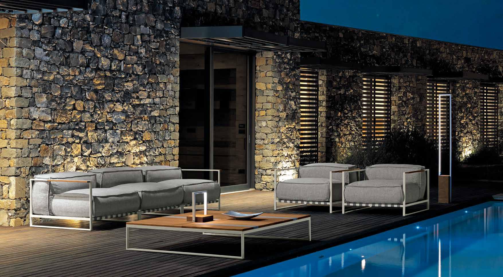 Informal and elegant, contemporary but at the same time tied to tradition. The Allure collection, designed by Christophe Pillet, gets its inspiration by the desire to combine elegance and informality. It is characterized by an unusual modularity that, starting from delicate aluminium feet, develops its shapes through a solid Accoya wood frame. The geometric and linear cushions in different sizes make it possible to create different combinations and scenarios. The result is a collection with a restless soul capable of giving character to mutable outdoor environments.