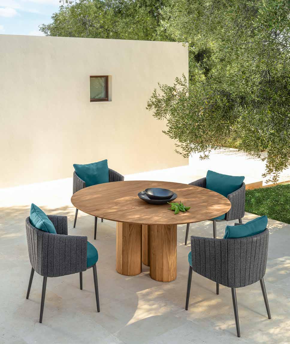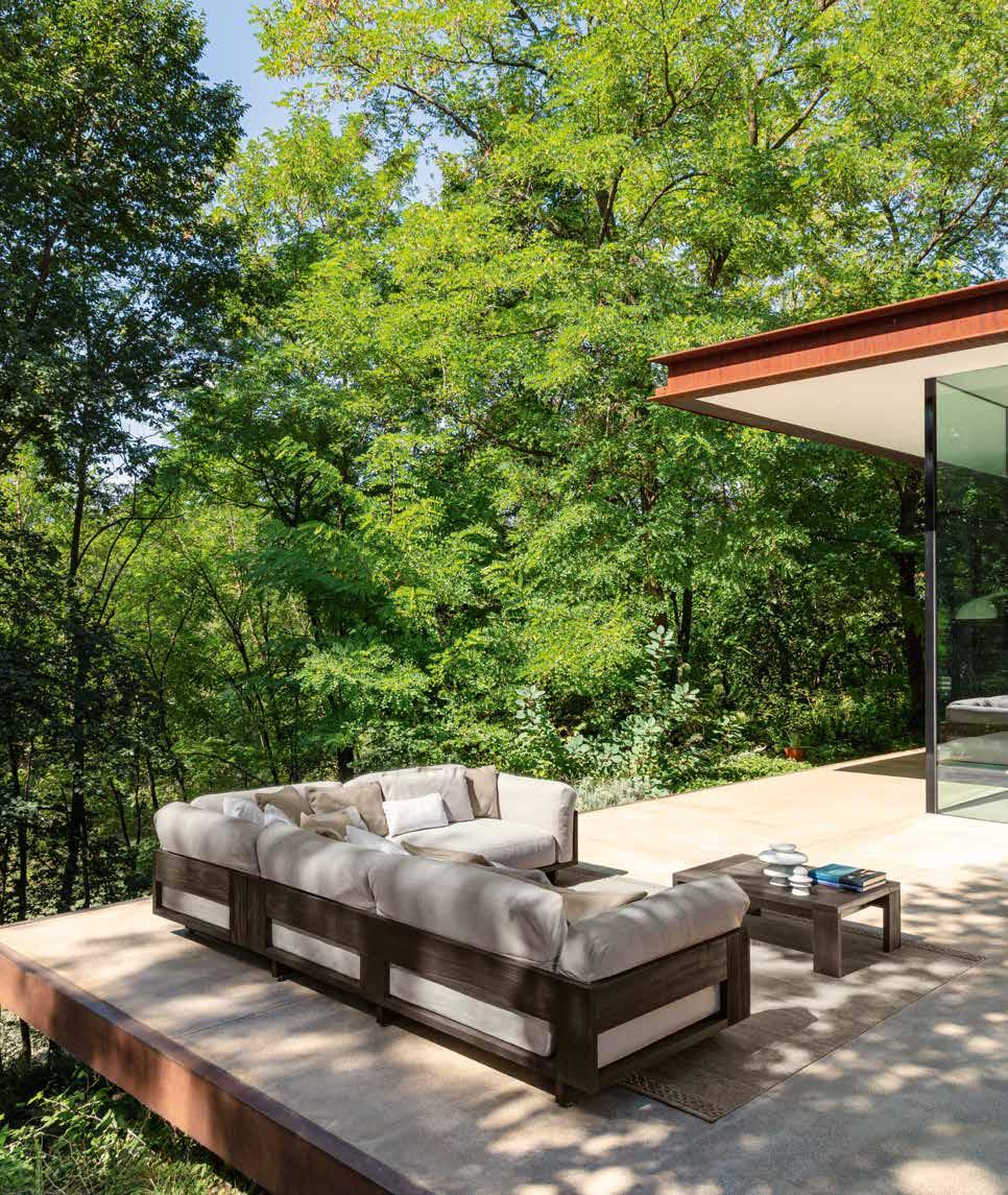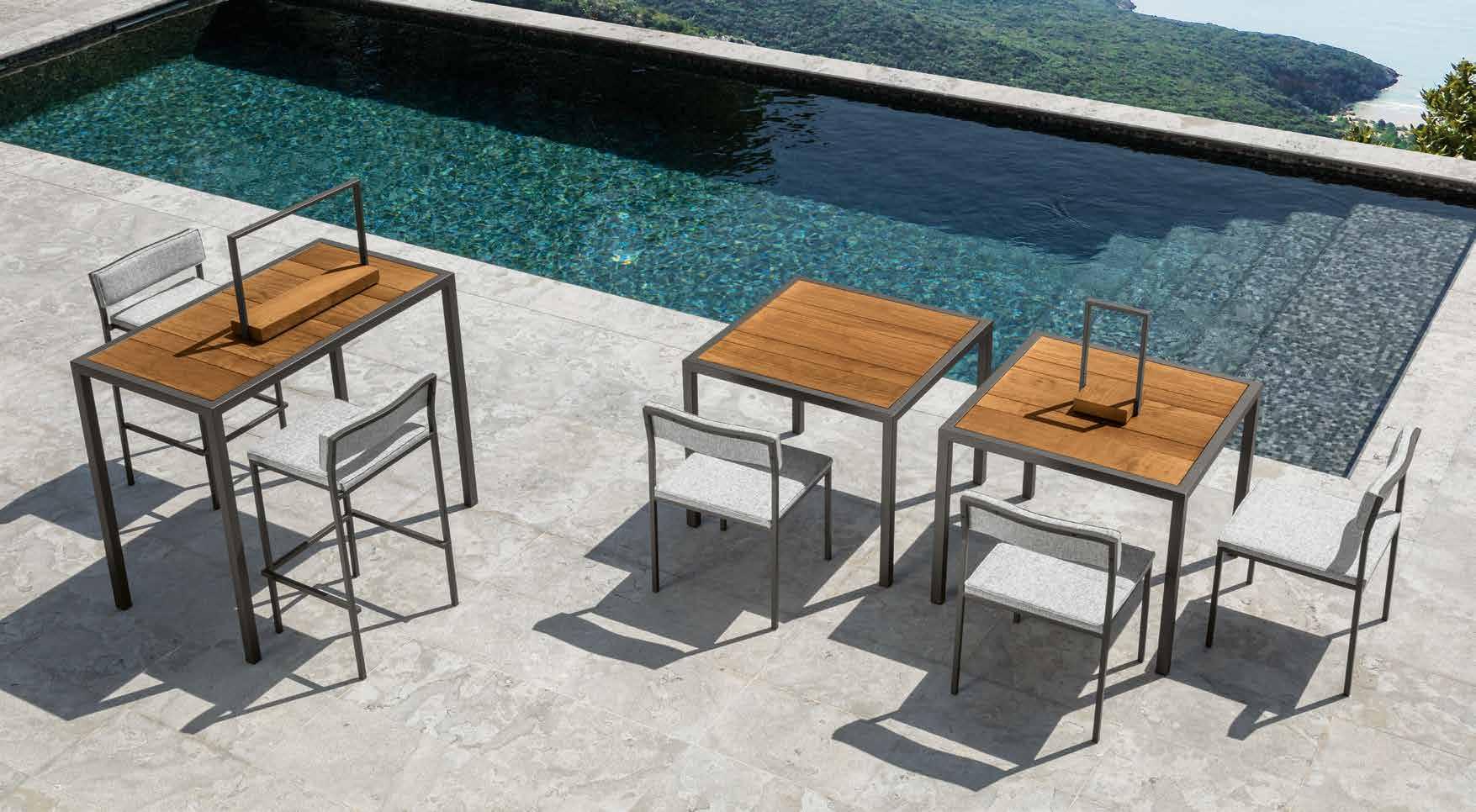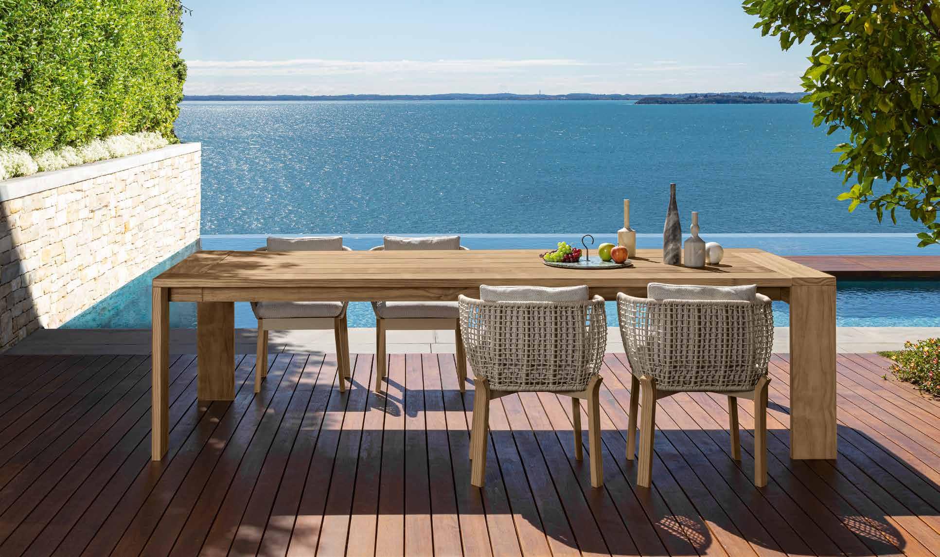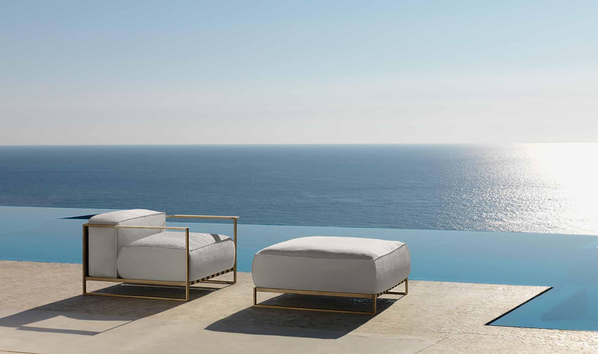 Informal and elegant, contemporary but at the same time tied to tradition. The Allure collection, designed by Christophe Pillet, gets its inspiration by the desire to combine elegance and informality. It is characterized by an unusual modularity that, starting from delicate aluminium feet, develops its shapes through a solid Accoya wood frame. The geometric and linear cushions in different sizes make it possible to create different combinations and scenarios. The result is a collection with a restless soul capable of giving character to mutable outdoor environments.
