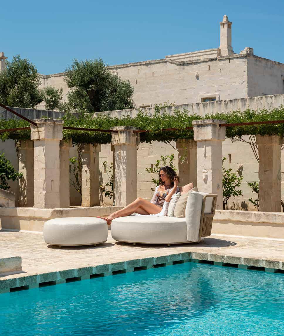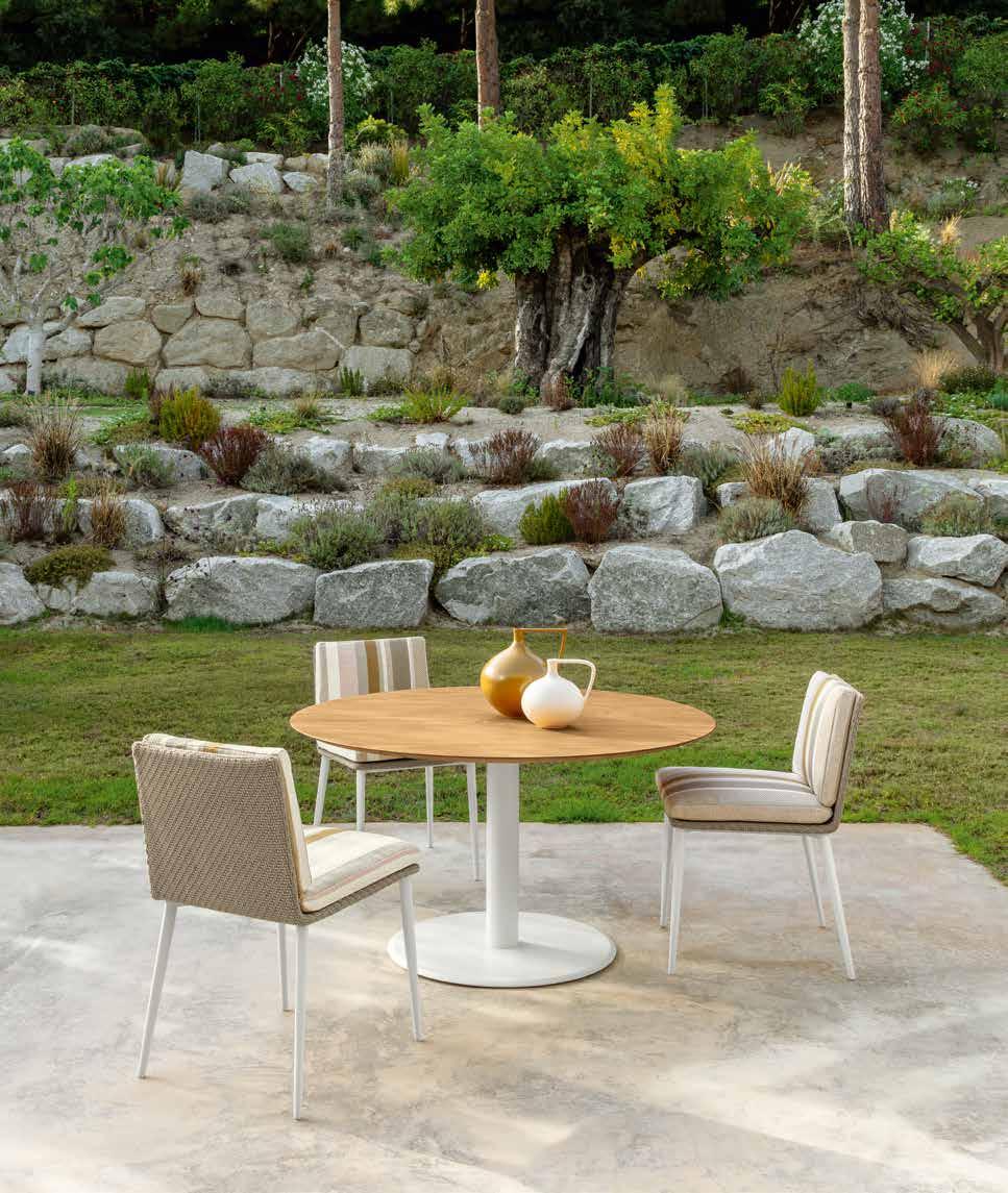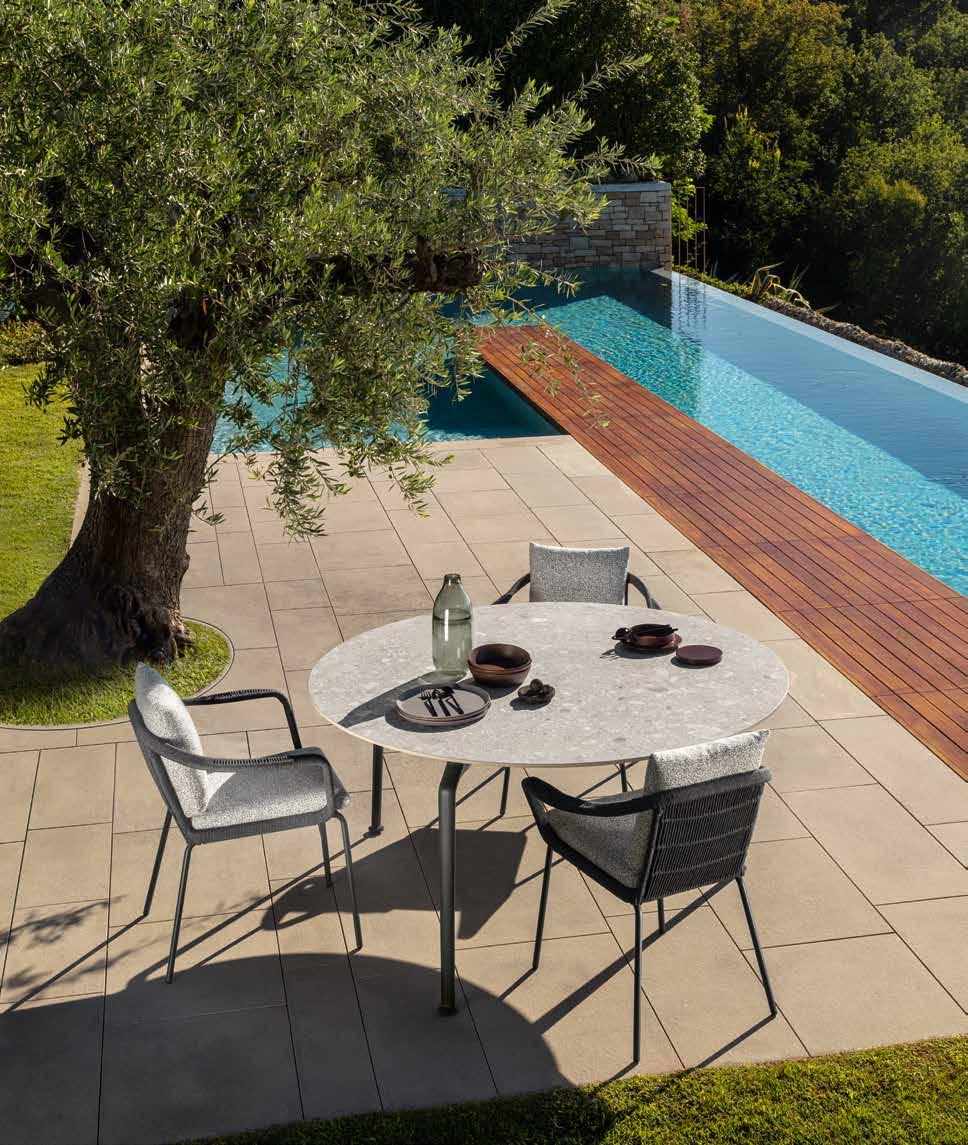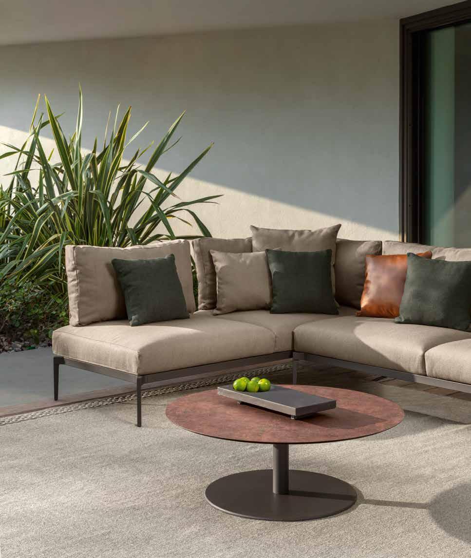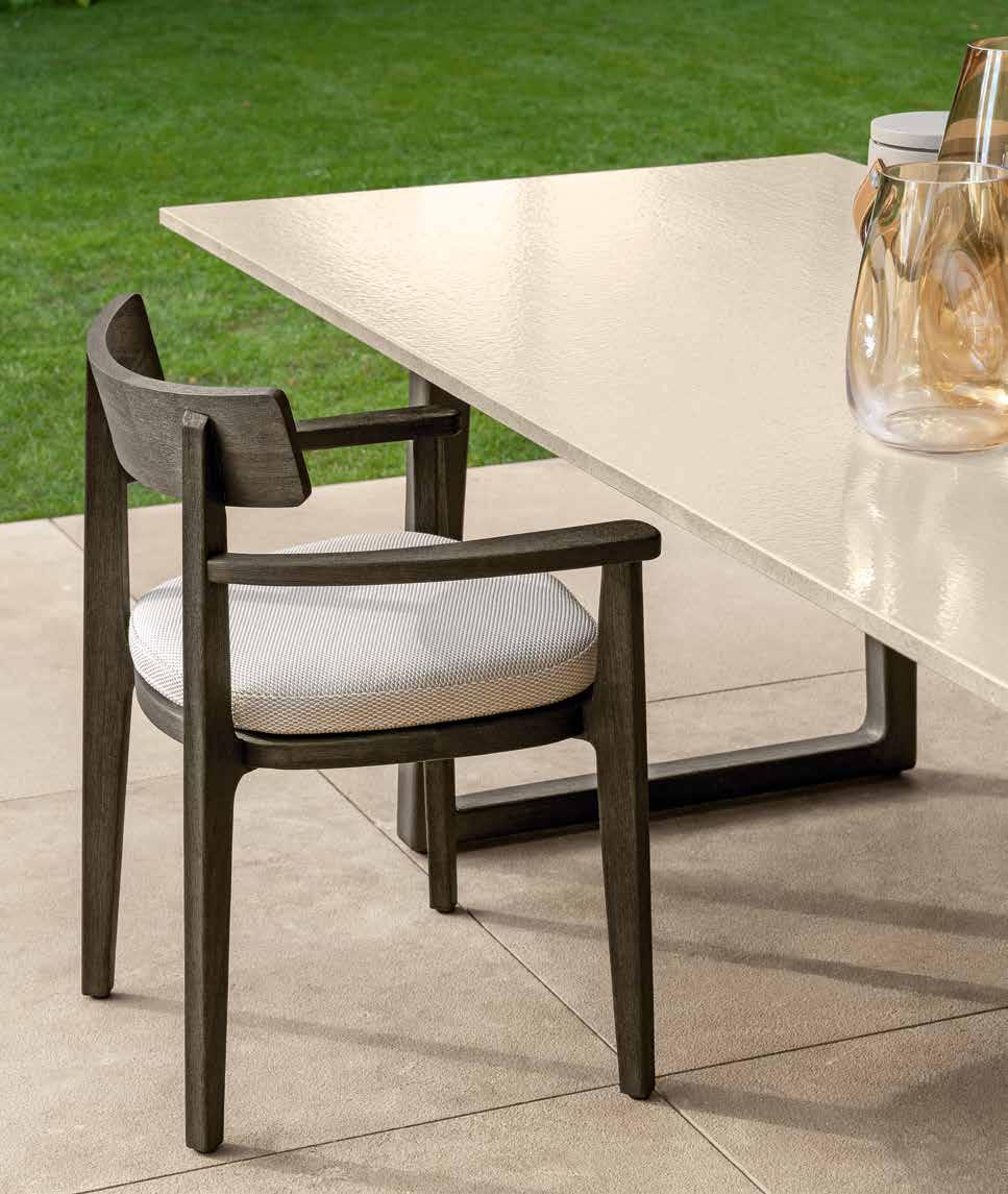 Informal and elegant, contemporary but at the same time tied to tradition. The Allure collection, designed by Christophe Pillet, gets its inspiration by the desire to combine elegance and informality. It is characterized by an unusual modularity that, starting from delicate aluminium feet, develops its shapes through a solid Accoya wood frame. The geometric and linear cushions in different sizes make it possible to create different combinations and scenarios. The result is a collection with a restless soul capable of giving character to mutable outdoor environments.