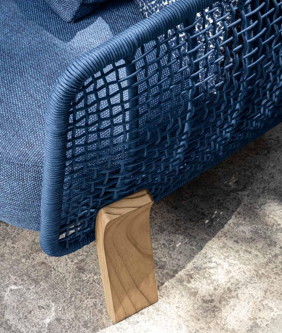 teak wood frame in natural colour padded rope in ardesia colour cushions in dark grey colour