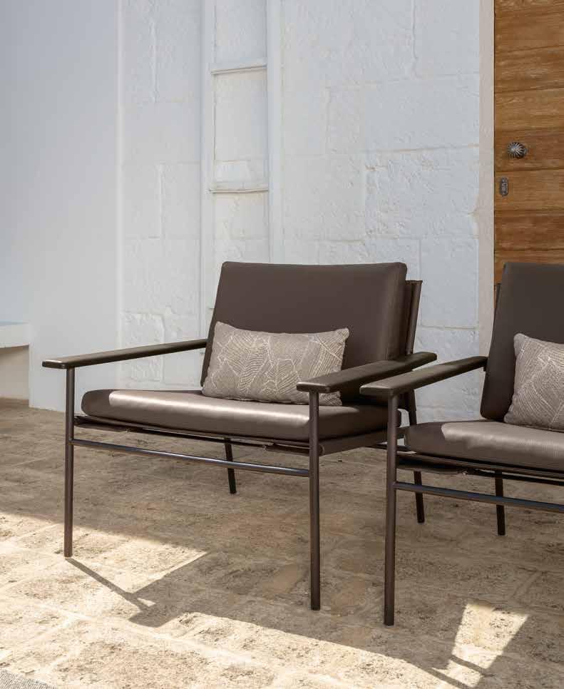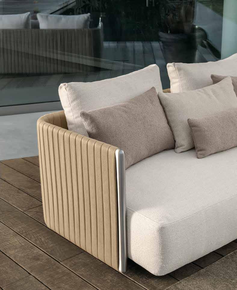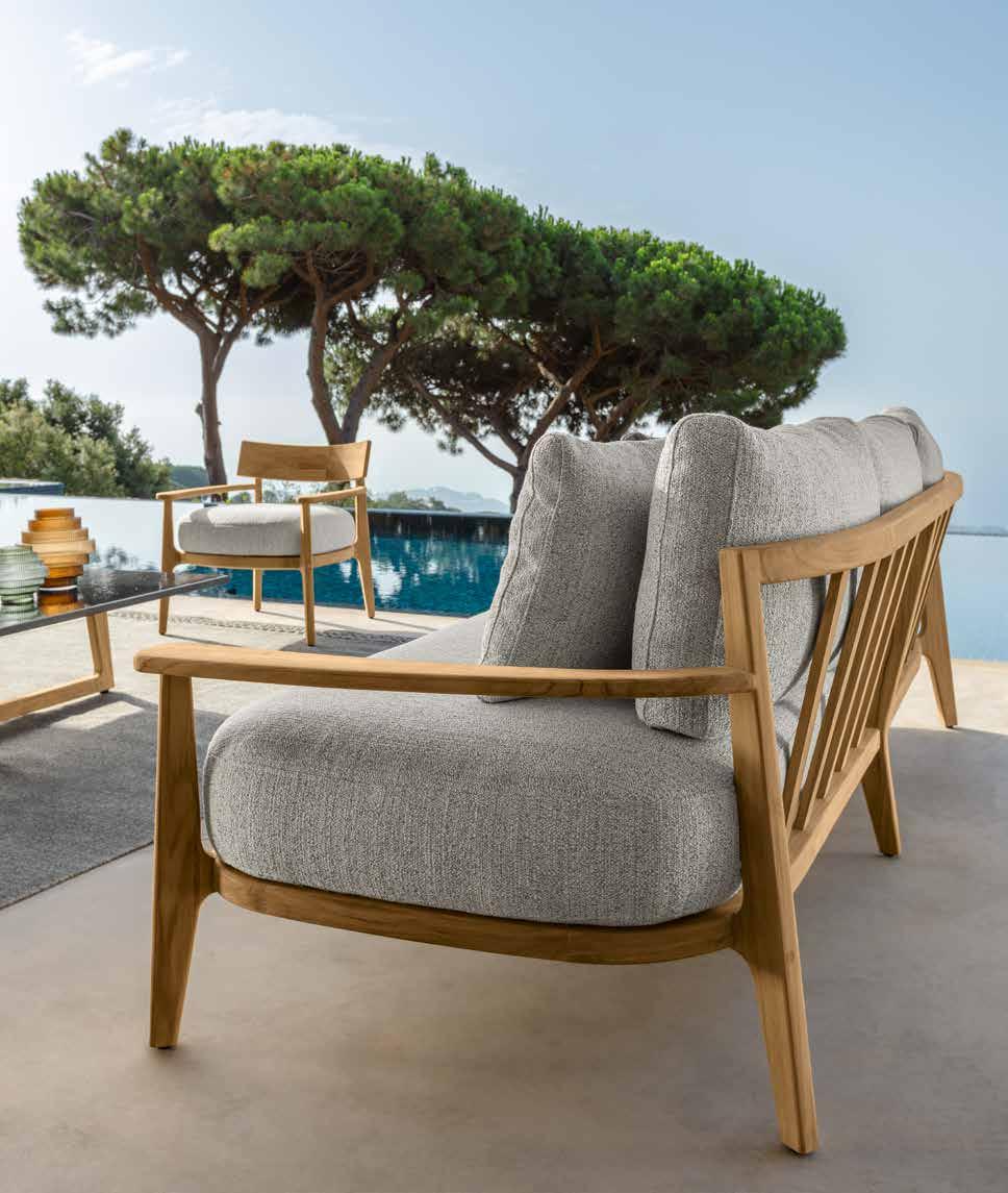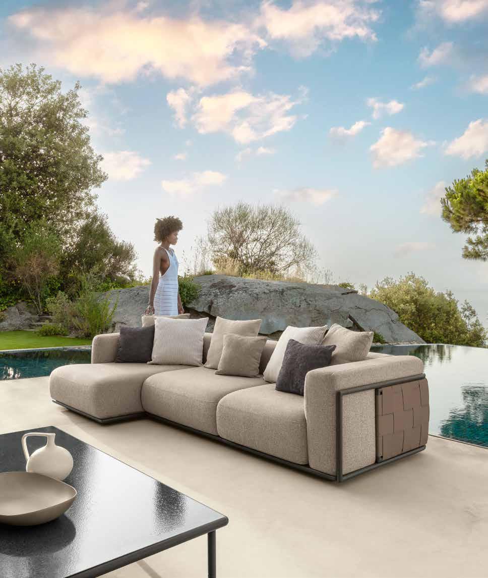 Informale ed elegante, contemporanea ma legata alla tradizione. La collezione Allure, firmata Christophe Pillet, nasce dal desiderio di unire eleganza ed informalità. Una modularità inconsueta che, partendo da delicati piedini in alluminio si sviluppa in orizzontale attraverso una solida cornice in legno d’ Accoya. La cuscineria geometrica e lineare, di diverse dimensioni, è in grado di dar vita a diverse combinazioni e scenari. Il risultato è una collezione dall’animo inquieto in grado di conferire carattere ad ambienti outdoor in perenne mutamento.