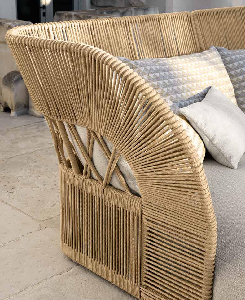 sofa love seat, lounge armchair teak wood frame in natural teak colour padded rope in nut colour cushions in cordonetto beige colour coffee table D90 in accoya wood frame in natural teak colour
