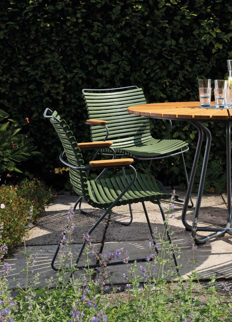 A collection of outdoor chairs made of intelligently designed plastic lamellas combined with powder coated steel and beautiful bamboo parts. The components are carefully composed to give the lamellas exactly the right strength and resilience to provide excellent cushion free seating.