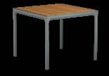 A collection of modular outdoor lounge furniture with powder coated aluminum frame, cushions in water repellent fabric and bamboo side tables.