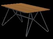 A lounge collection with a frame in powder coated black steel and soft cushions in Sunbrella fabric. Tabletop in thermo ash FSC ® – FSC C153404.