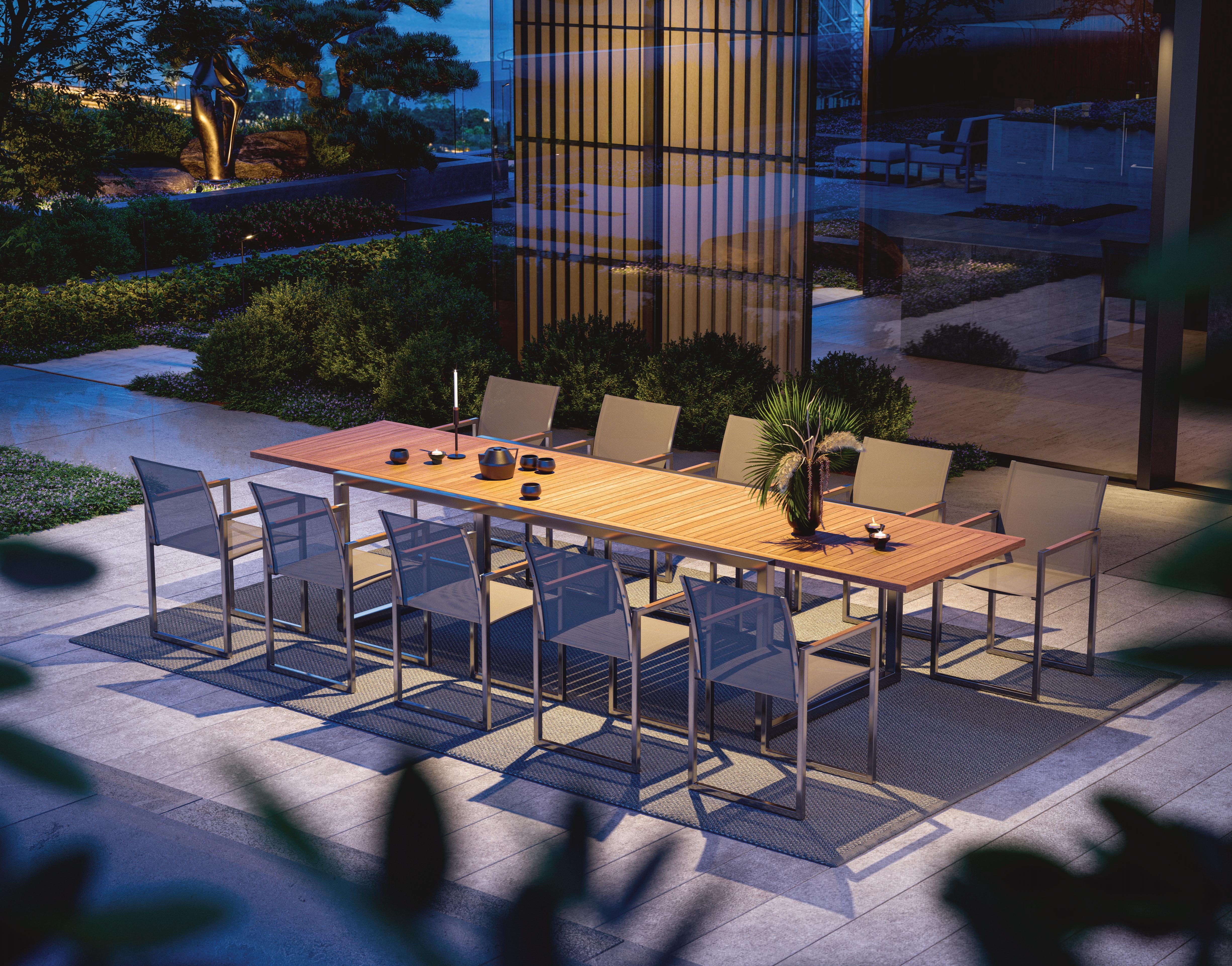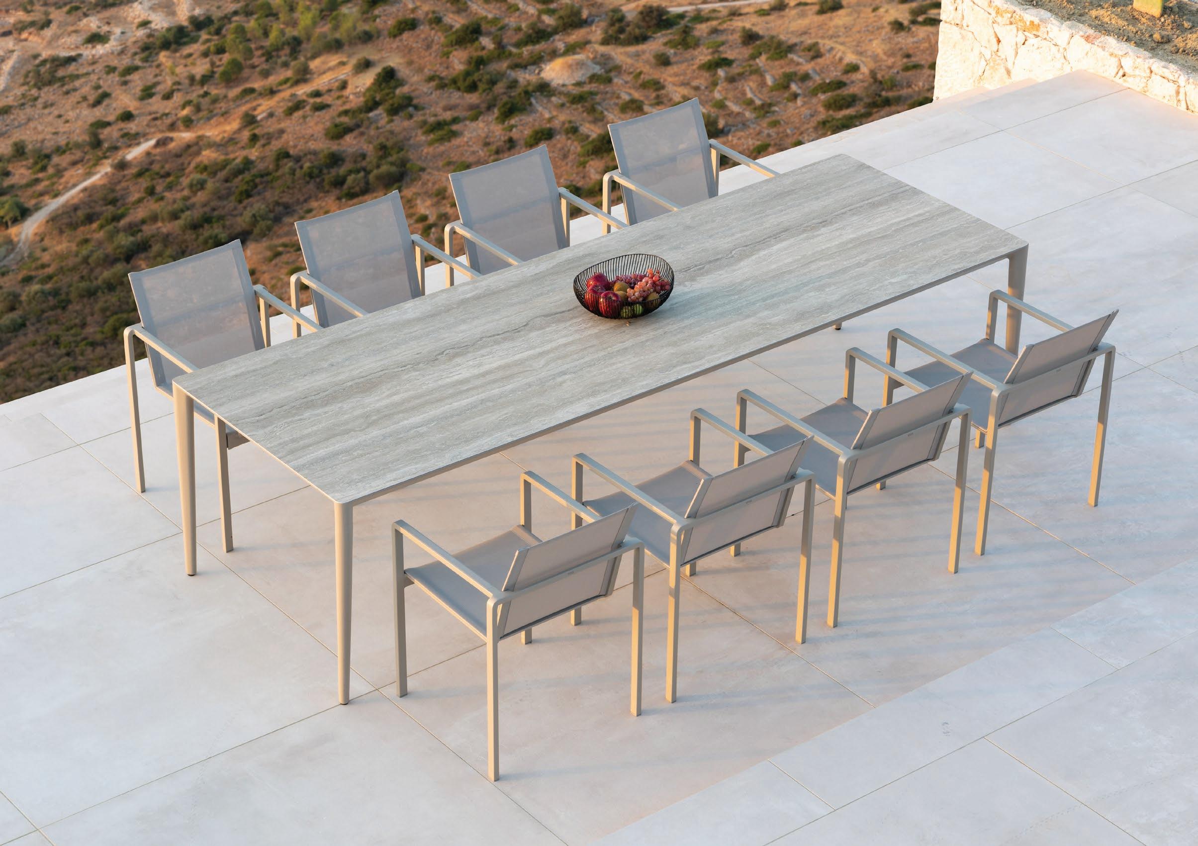 79 TRAVERSE 130 FOLDABLE DINING TABLE (P. 359) - EXES 55 DINING CHAIRS (P. 249)