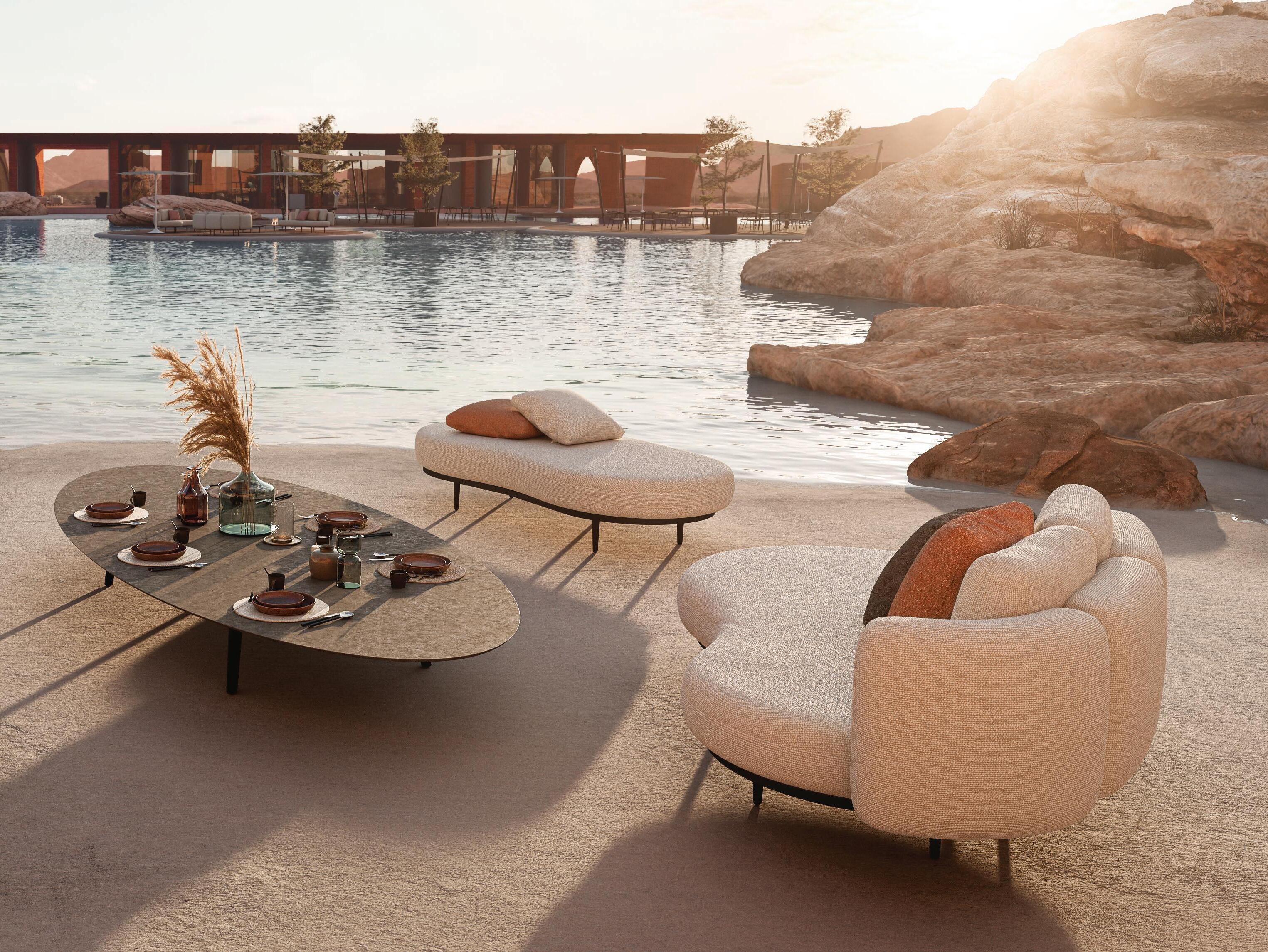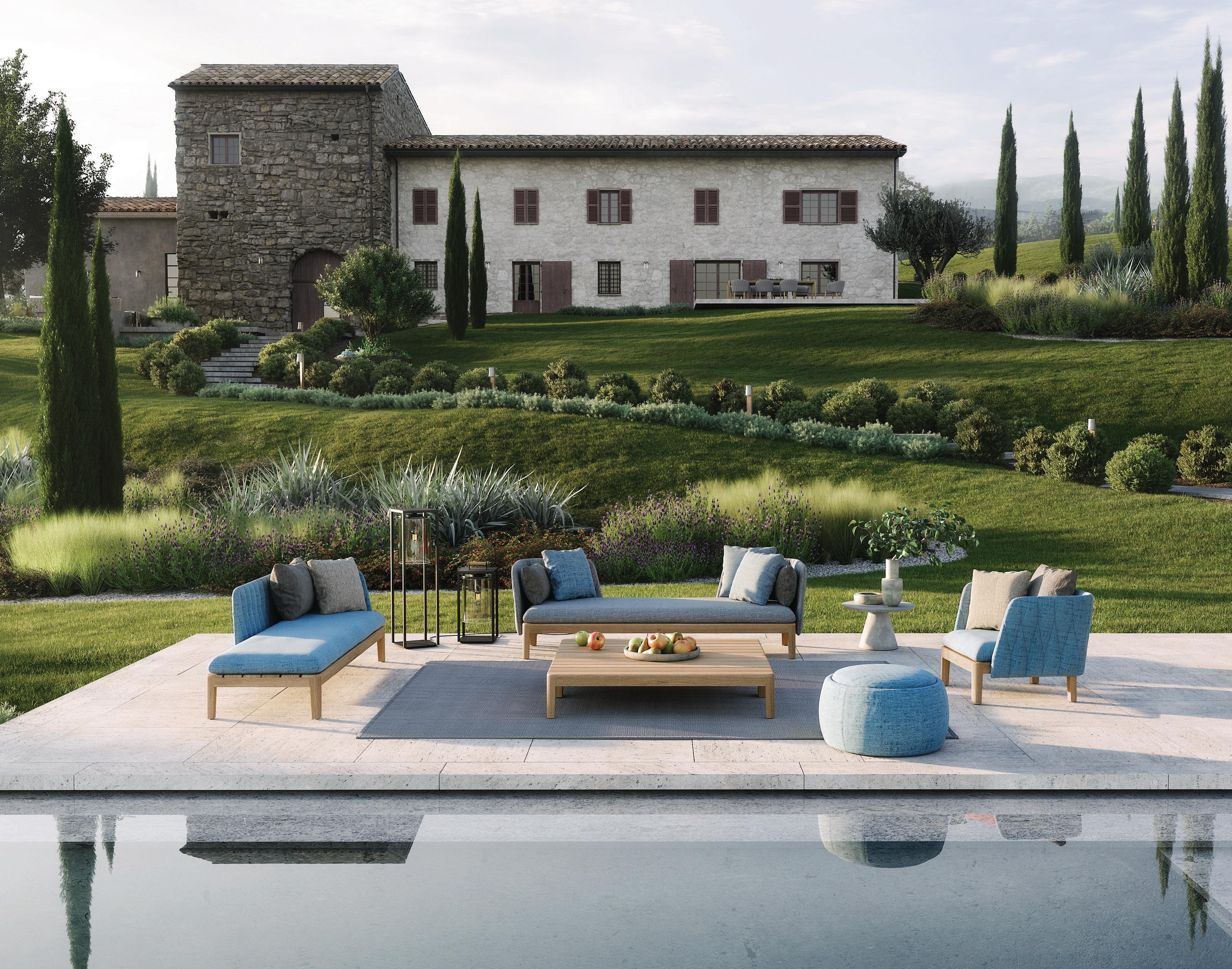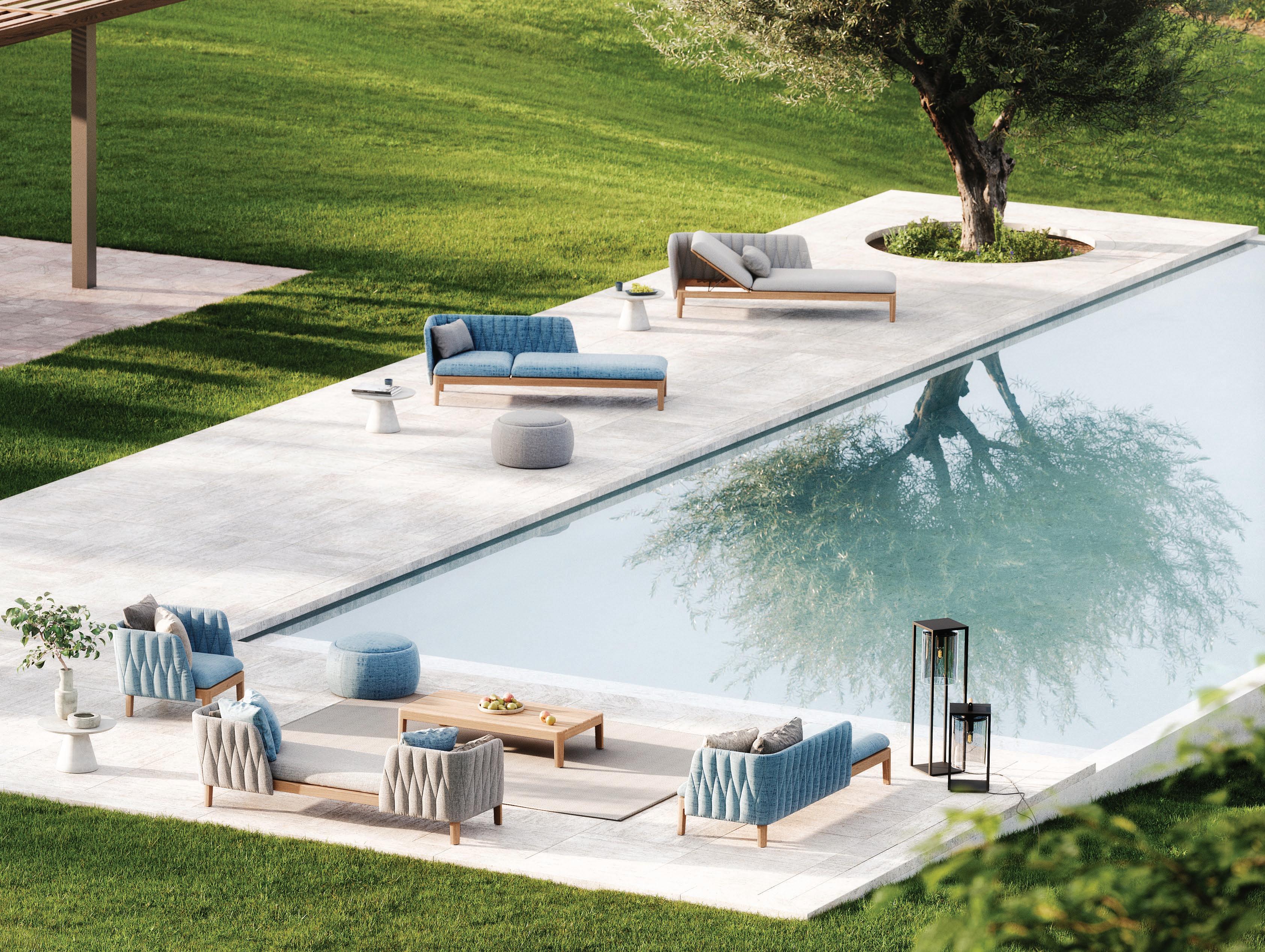 41 CALYPSO LOUNGE (P. 229) - TONO 50 POUF (P. 357) - BUTLER 40 SIDE TABLES (P. 221)