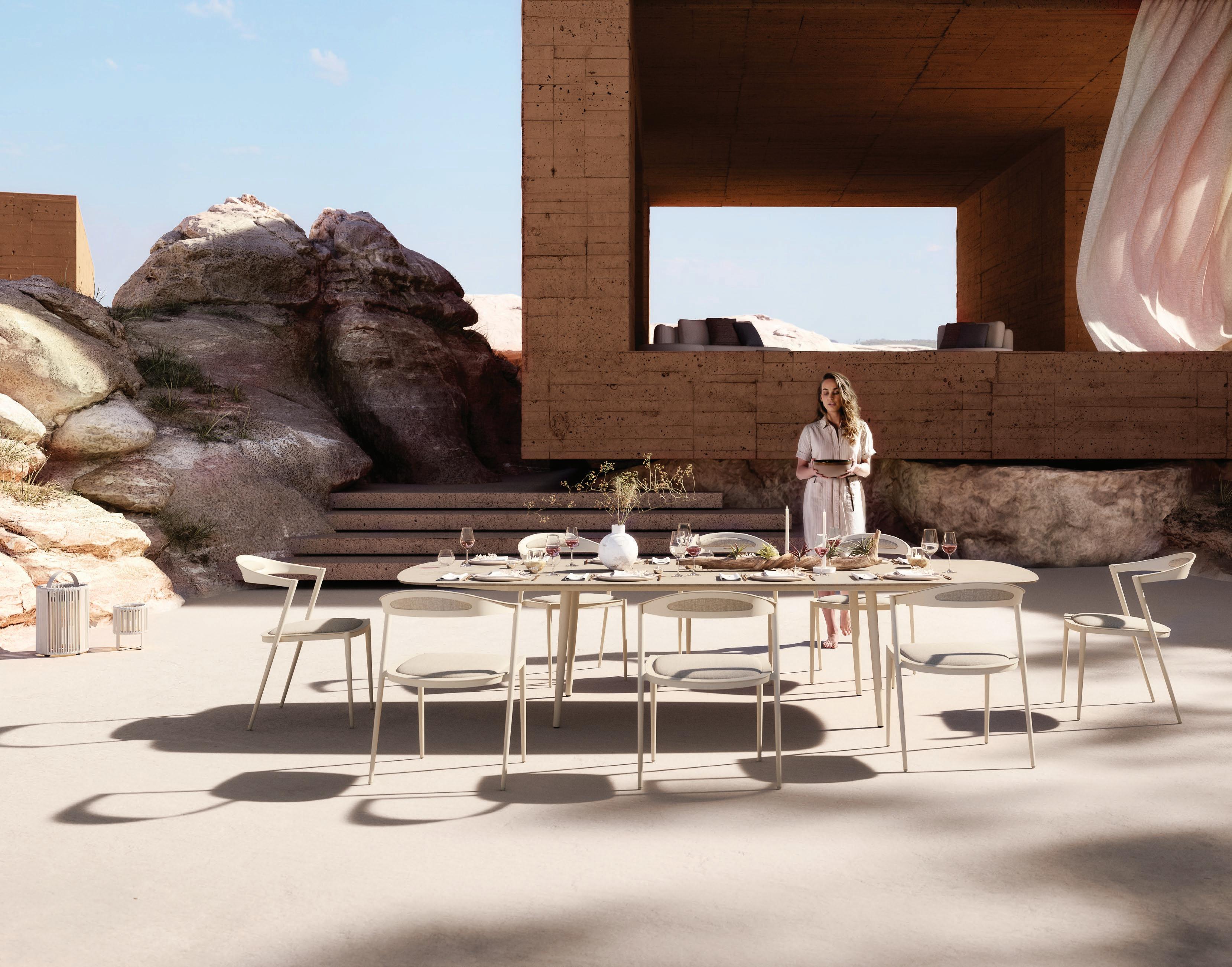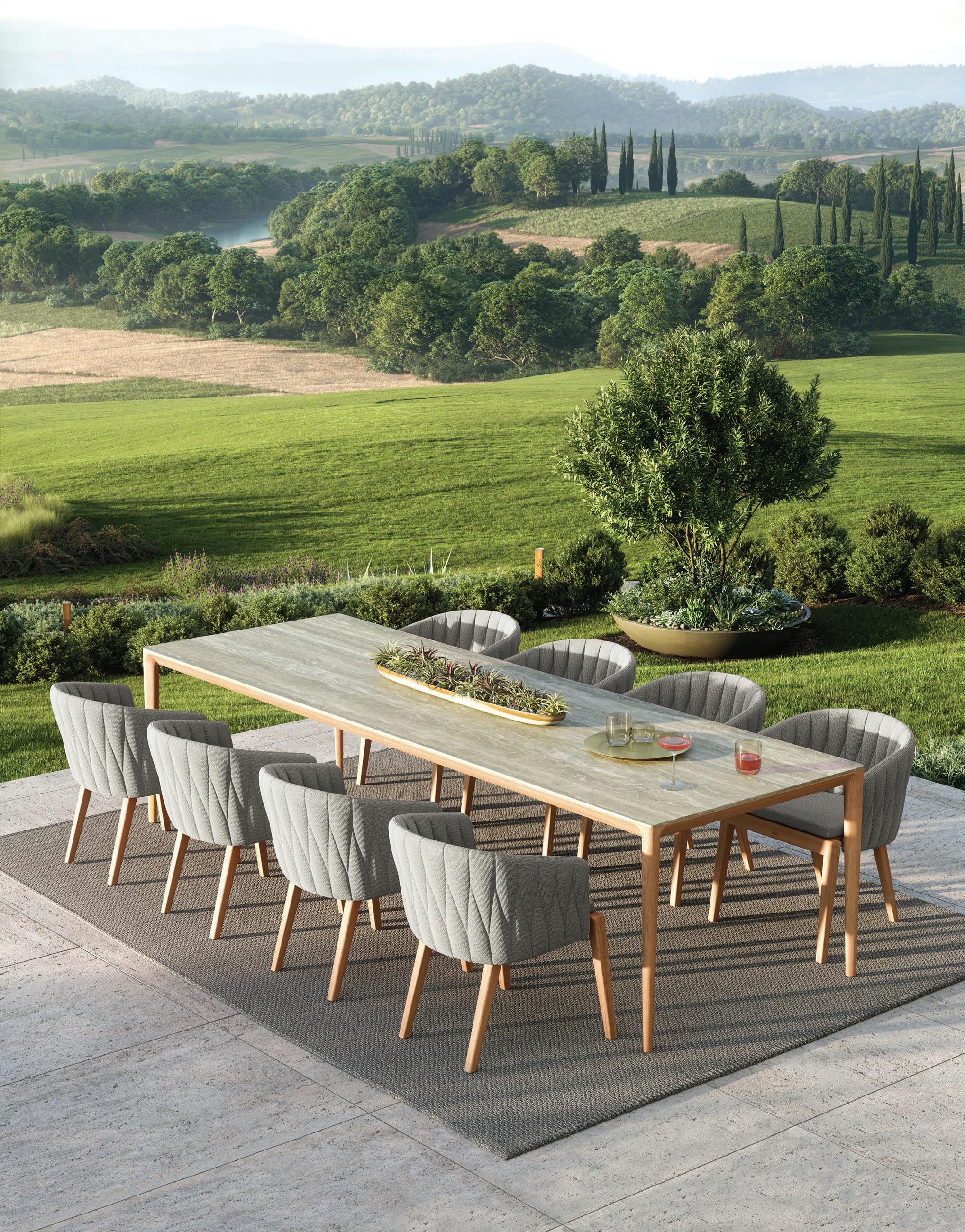 184 NINIX 360 EXTENDABLE DINING TABLE (P. 287) - NINIX 55 DINING CHAIRS (P. 281) - RUG (P. 385) - NINIX 195 LOUNGERS (P. 283)
