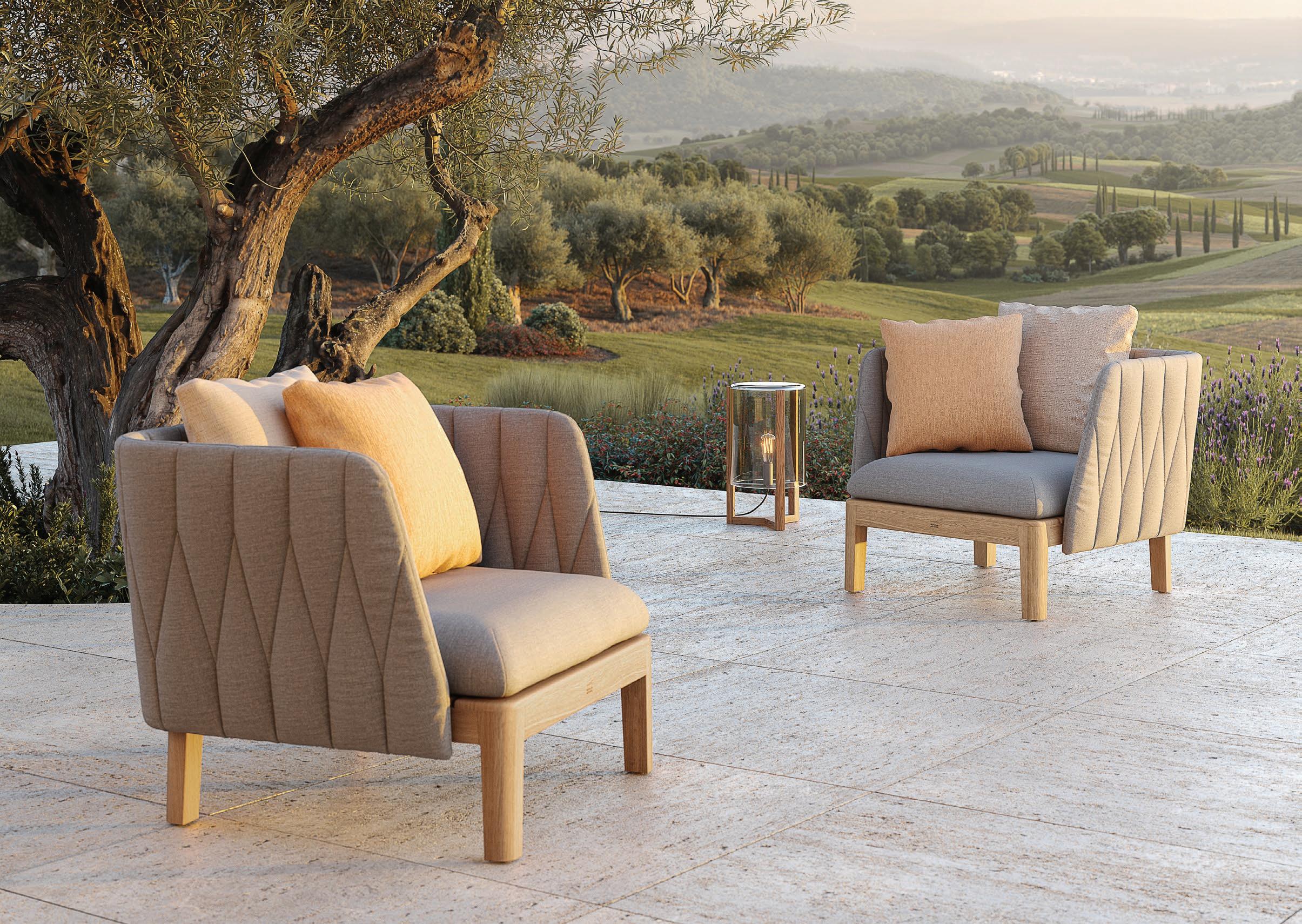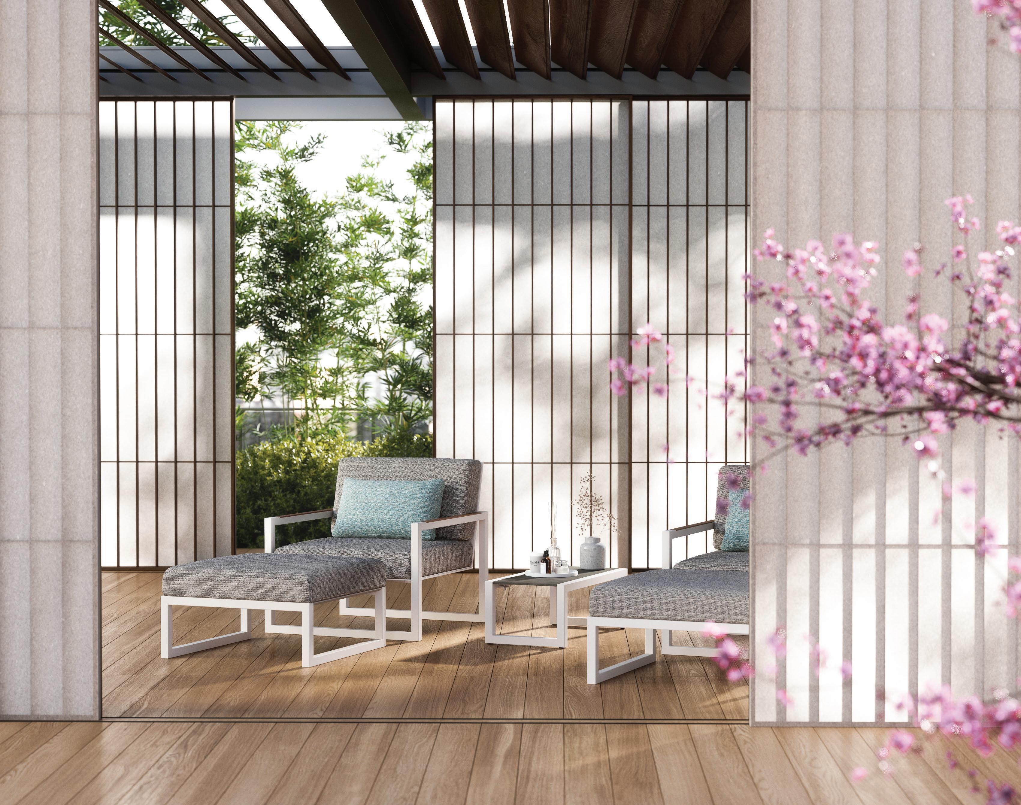 159 ALURA LOUNGE (P. 197) - SAMBA 77 LOW CHAIR (P. 315) - RUG (P. 385) - OAZZ PARASOL (P. 392)