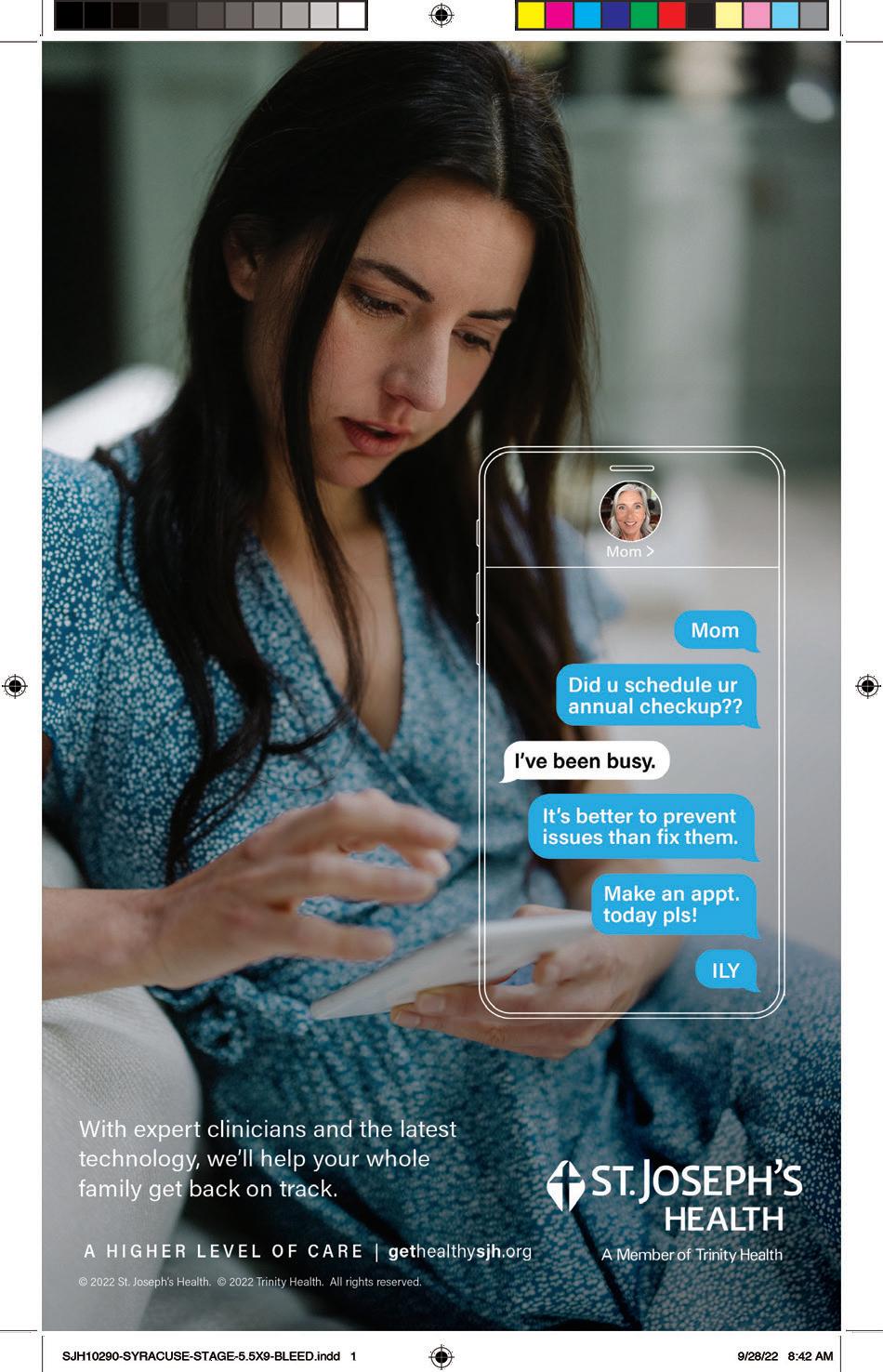 The Syracuse Stage program is produced six times a year. For advertising rates and information contact Joanna Penalva at 315-443-2636. Printed by QMC Group.