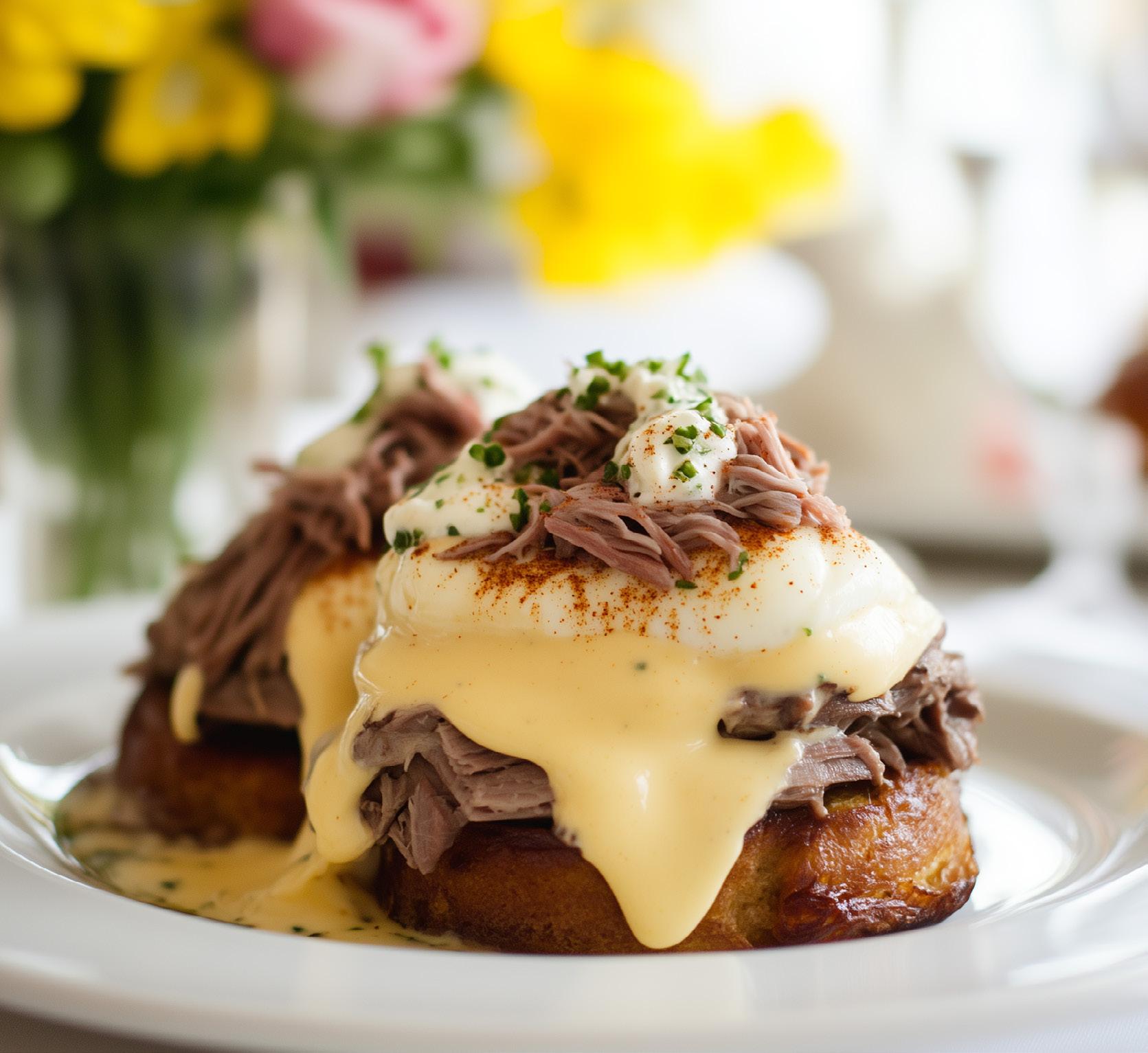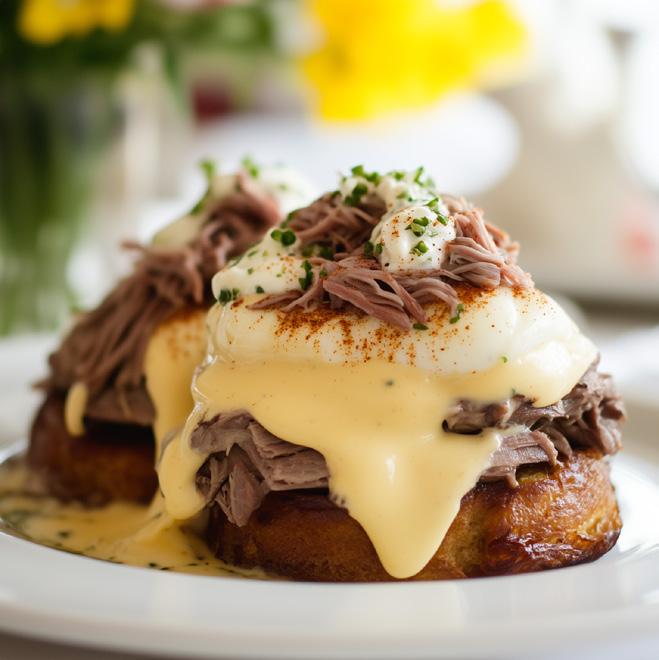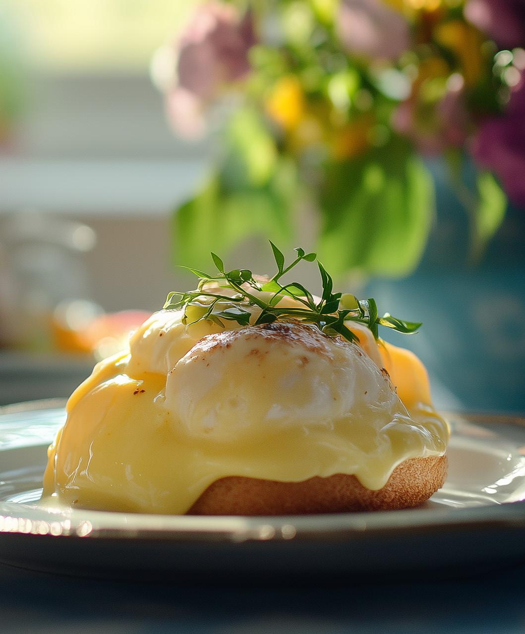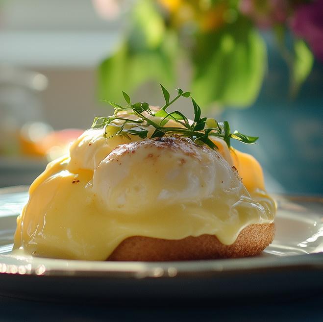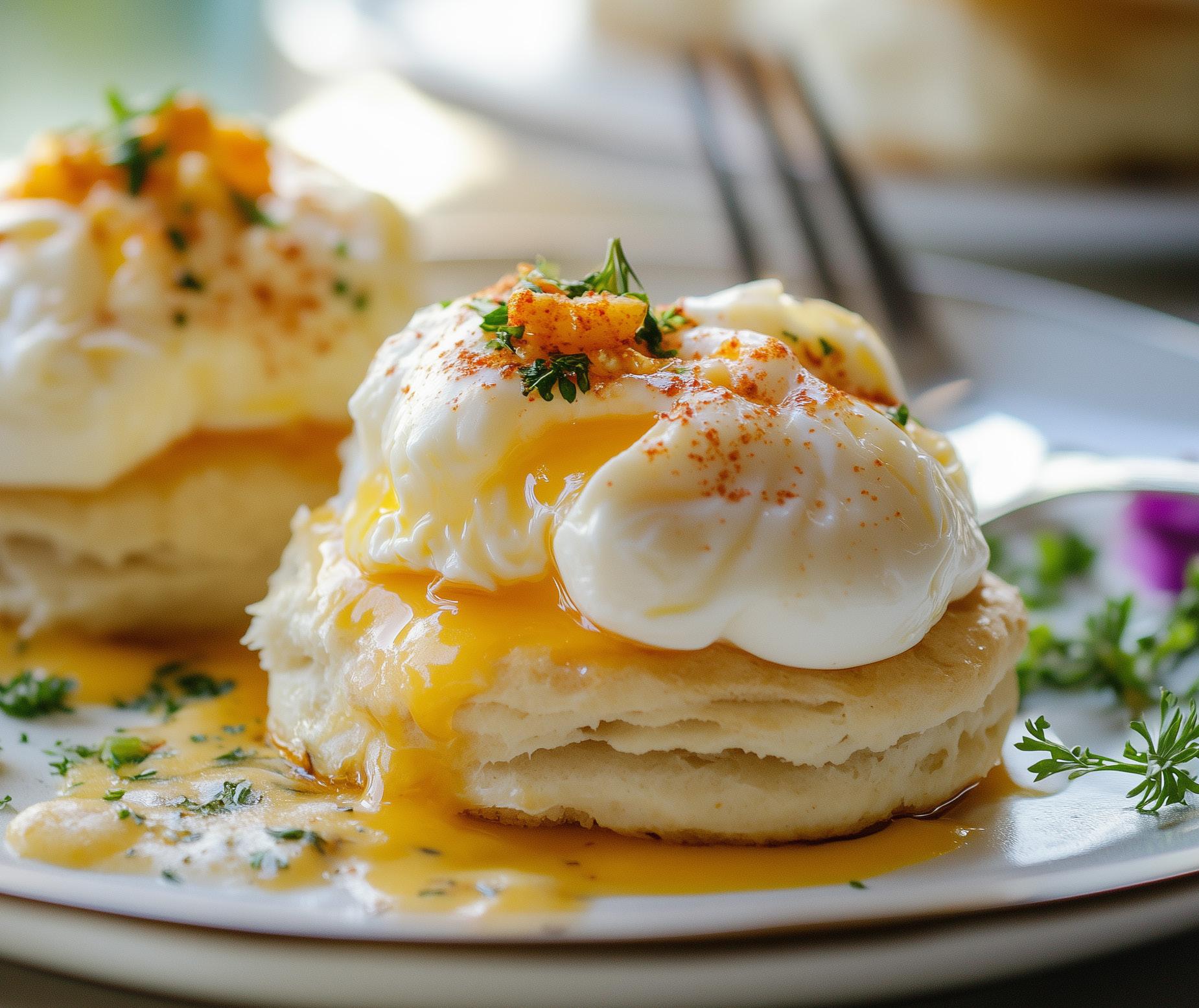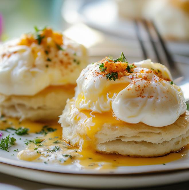 POACHED EGGS ON HOME-BAKED BISCUITS &