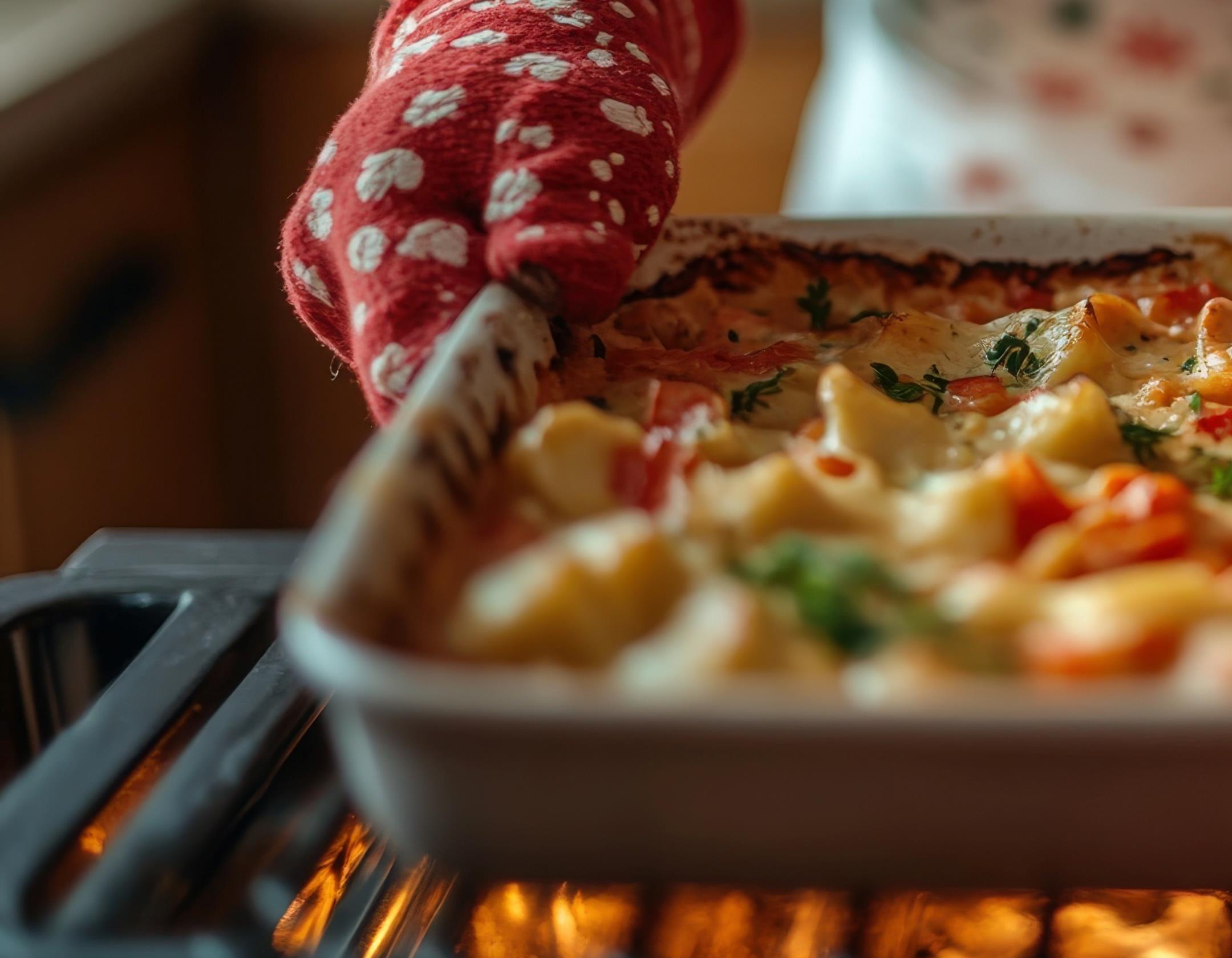 4. Combinemarinara,waterandseasoning. Pouroverthelayeredperogylasagna.