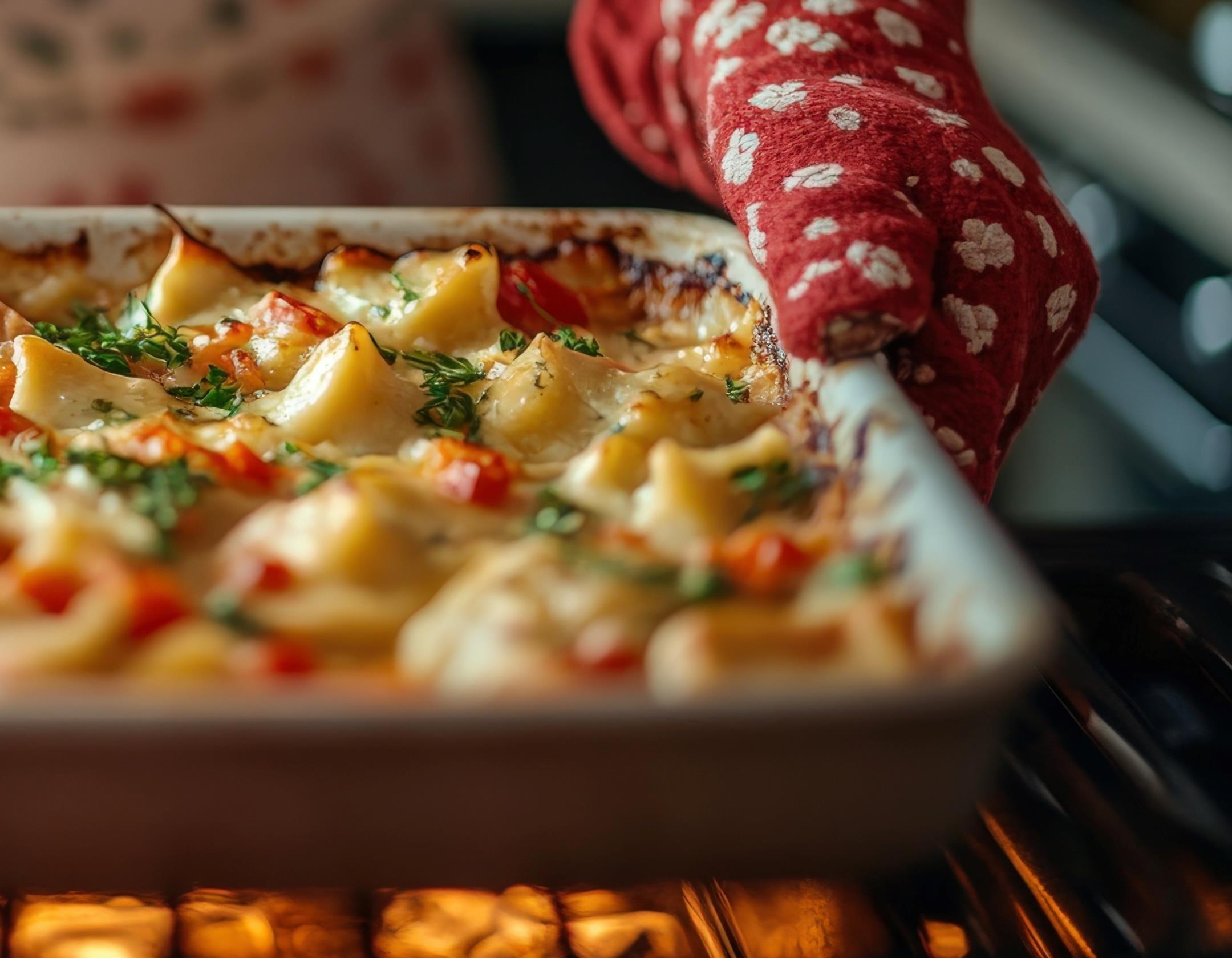 3. Assemblethelasagna:layerperogies, groundbeef,onionswithcheese.Repeat layers,finishwithcheeselayerontop.