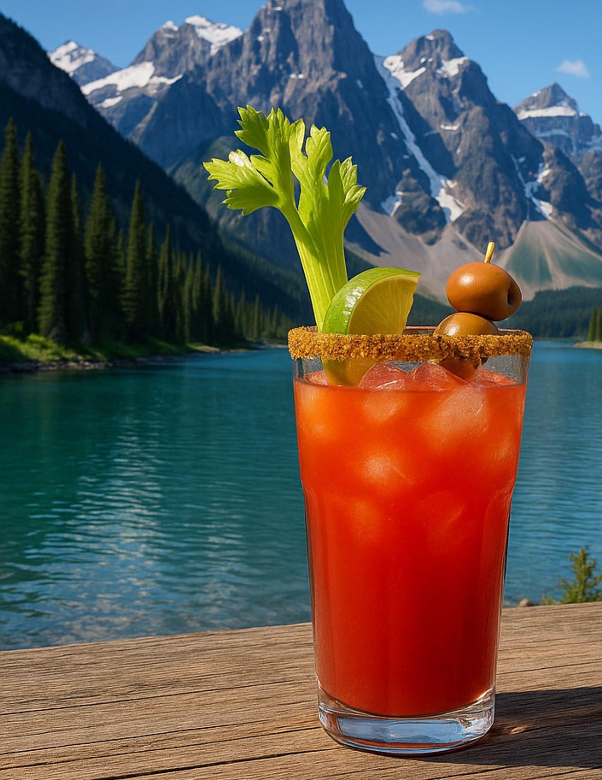 2 Savory Canadian cocktail made with Clamato juice and a celery garnish
