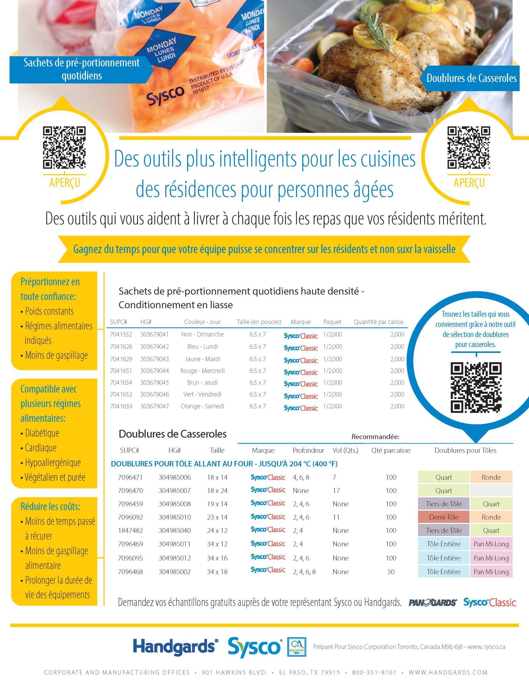 LesproduitsHandgardssoutiennentlesexploitants desétablissementsdesoinsdesantéetdesrésidences pouraînésavecdesoutilsconçuspourfaciliteret uniformiserleservicedesrepas.Lessacsdeportions TuffGardsassurentdesportionsprécisesetune identificationalimentaireclaire,tandisqueles doubluresPanGardsréduisentlenettoyageetgardent l’équipementdecuisineenmeilleurétat.Utilisés ensemble,cesarticlespermettentauxéquipesde consacrermoinsdetempsauxtâchesrépétitives,et plusdetempsauservicedesrésidents.