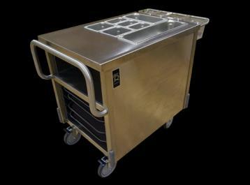 Différentes options de personnalisation : tiroir chauffe-plats, écran de protection, porte-menu, planche à découper, documentation et soutien au téléphone et par courriel avec chaque chariot.