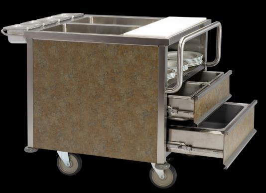 • Permettez aux résidents de choisir grâce aux chariots mobiles : Leschariotsdecéréales,de soupes,deboissons,dedessertsetleschariots SuzyQpermettentd’offrirdesalimentsfrais directementauxrésidentsdanslessallesàmanger, lescouloirsouleschambres.Cetteapproche favoriselesinteractions,respecteleschoix individuelsettransformeleservicealimentaireen uneexpérienceaxéesurlesrelations.Lefaitde voiretd’entendrelechoixd’unrésidentavantde placerlanourrituredevantluipermetdes’assurer quecechoixestréellementrespecté.